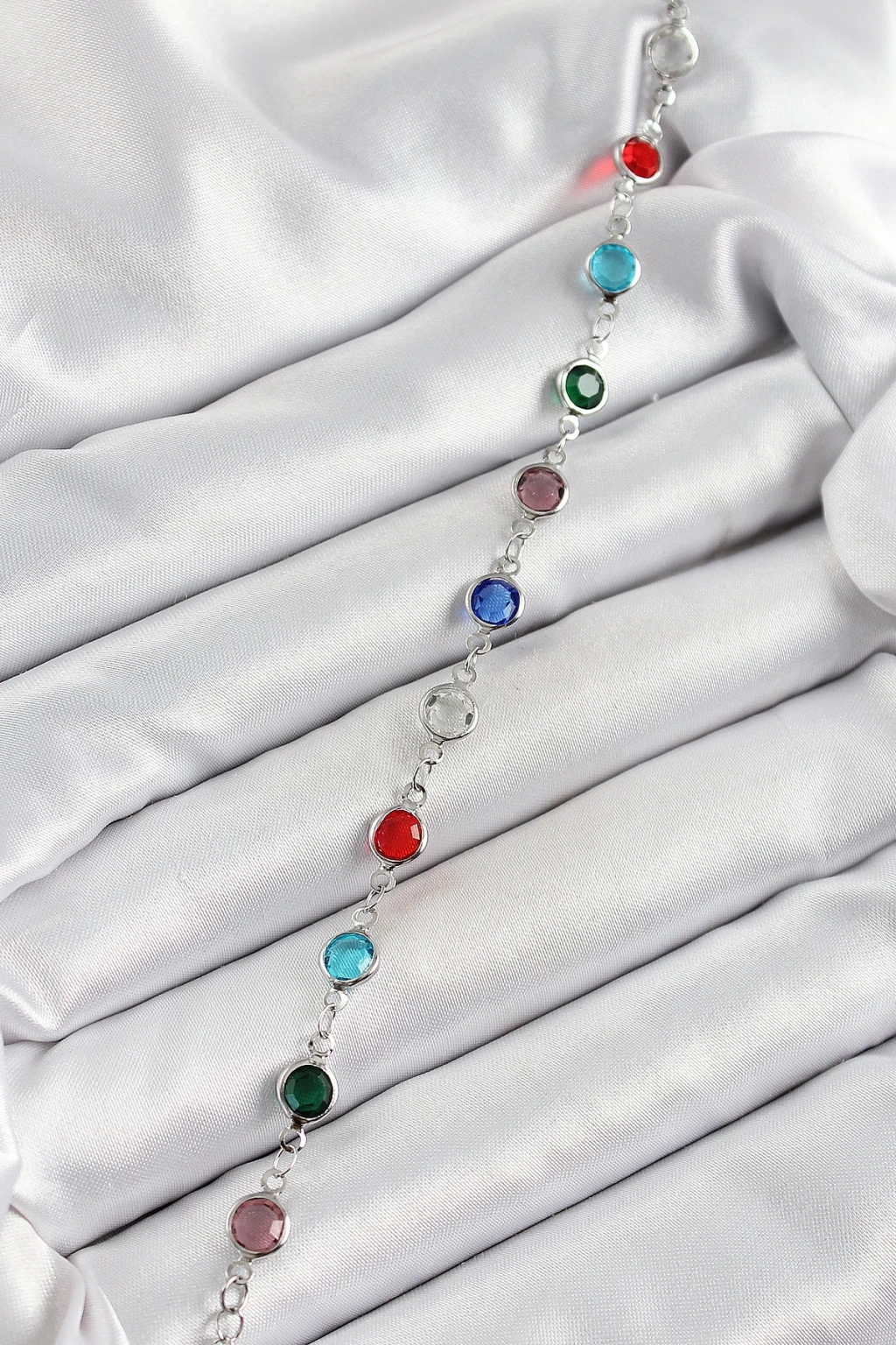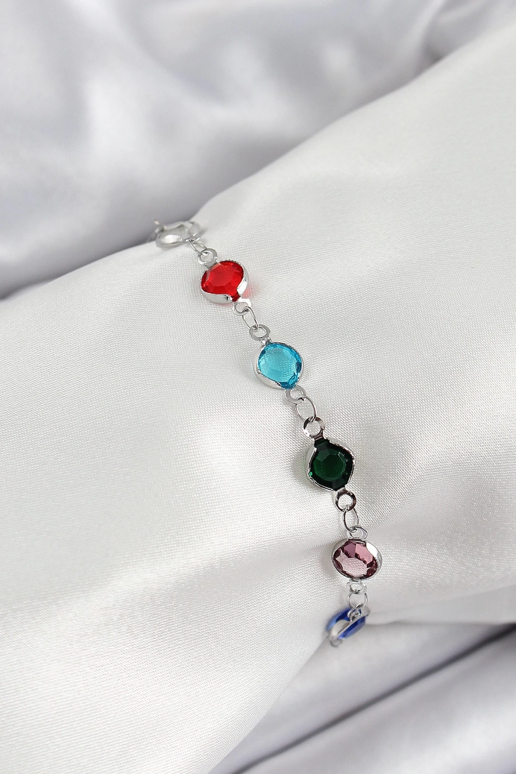 BFS Pirinç Gümüş Renk Karışık Renk Zirkon Taşlı Kadın Bileklik
