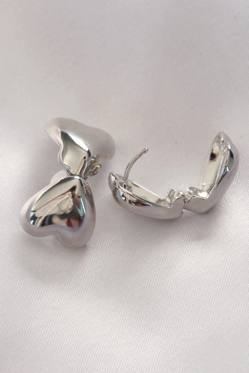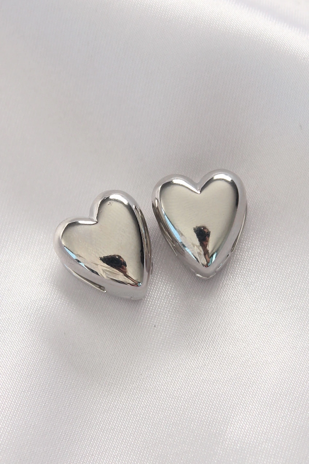 BFS Pirinç Gümüş Renk Minimal Bombeli Kalp Küpe