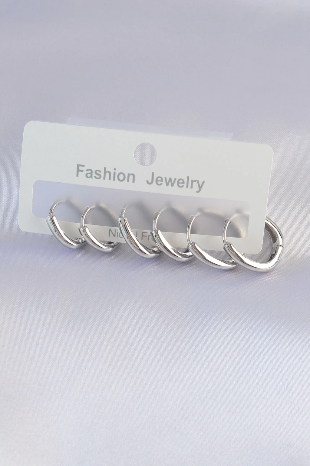 BFS Pirinç Gümüş Renk Oval Küpe Seti