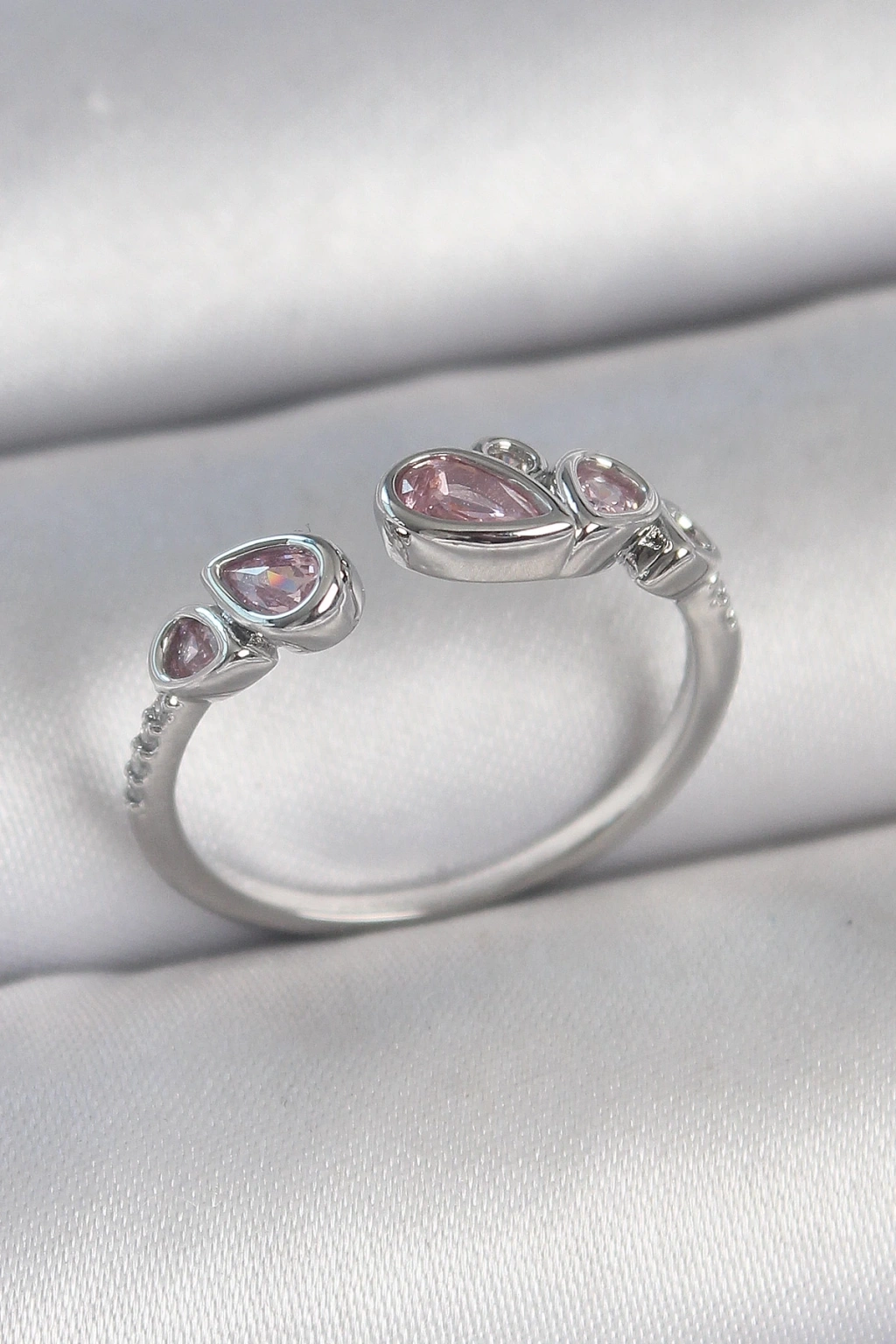 BFS Pirinç Gümüş Renk Pembe Damla Zirkon Taşlı Ayarlanabilir Model Kadın Yüzük