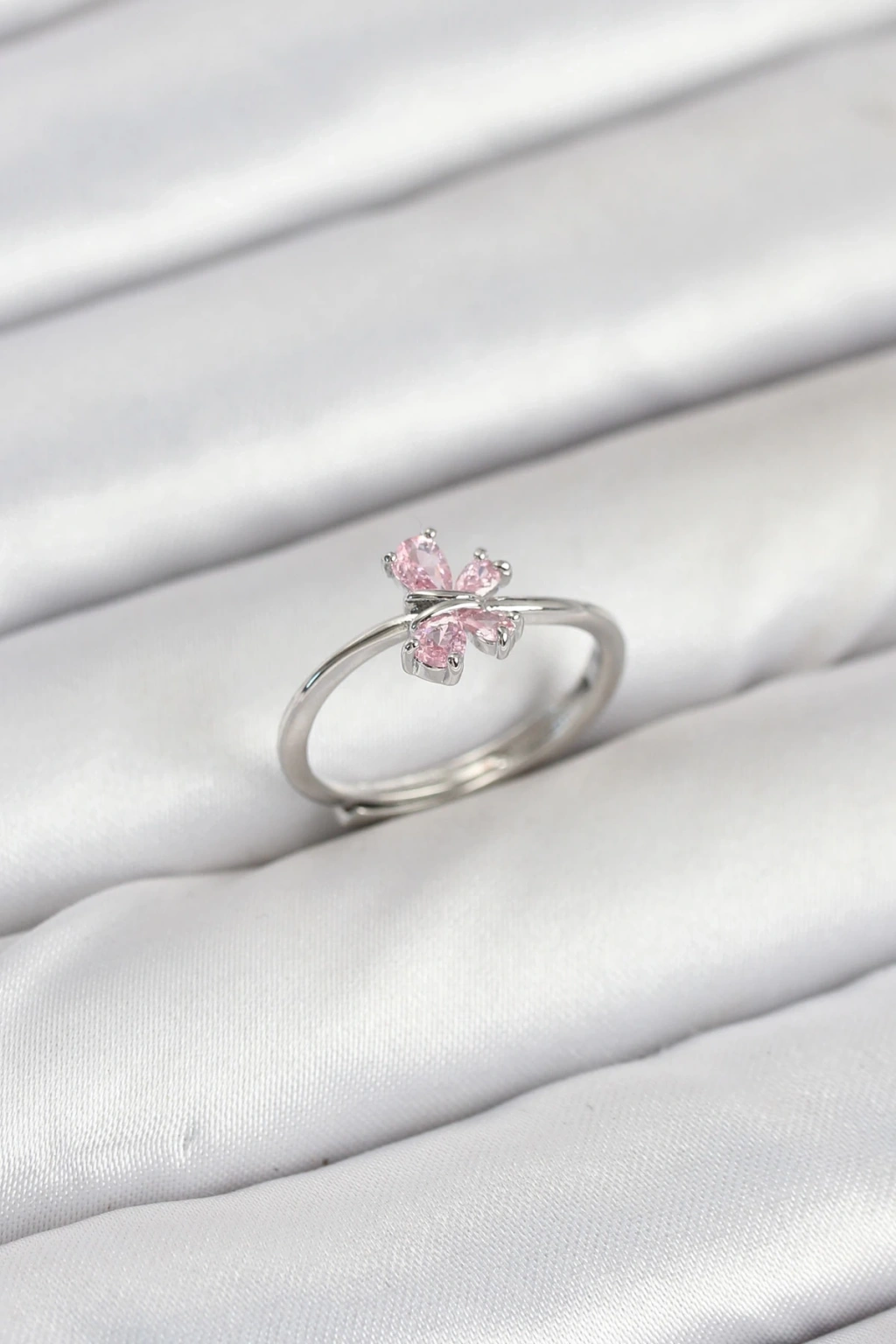 BFS Pirinç Gümüş Renk Pembe Kelebek Kadın Yüzük