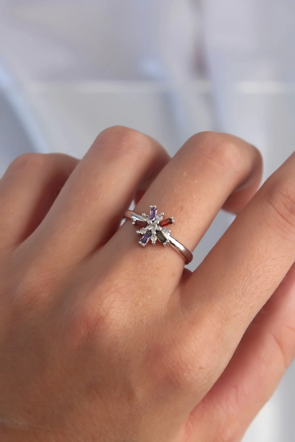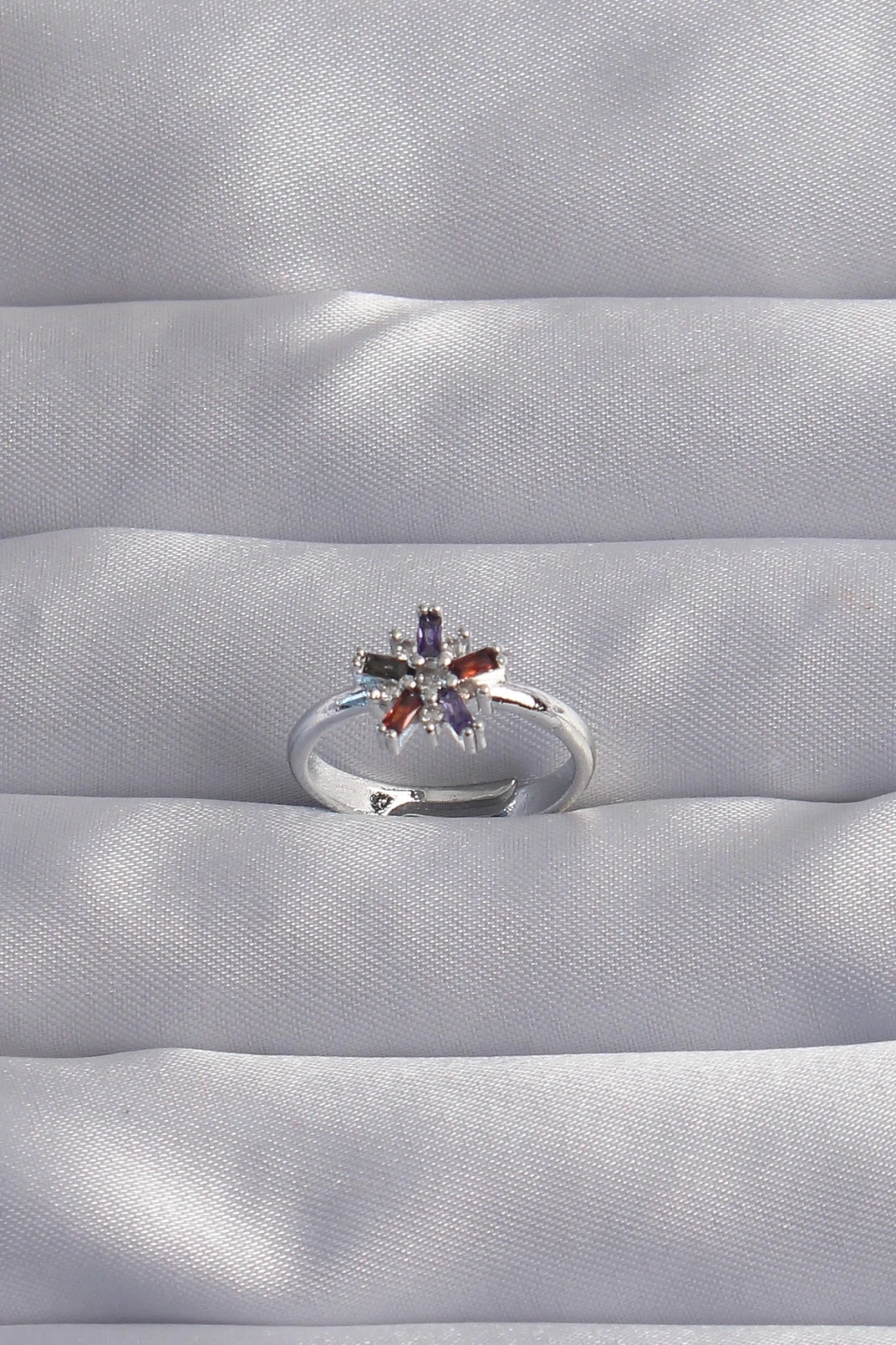 BFS Pirinç Gümüş Renk Renkli Zirkon Taşlı Ayarlamalı Yüzük