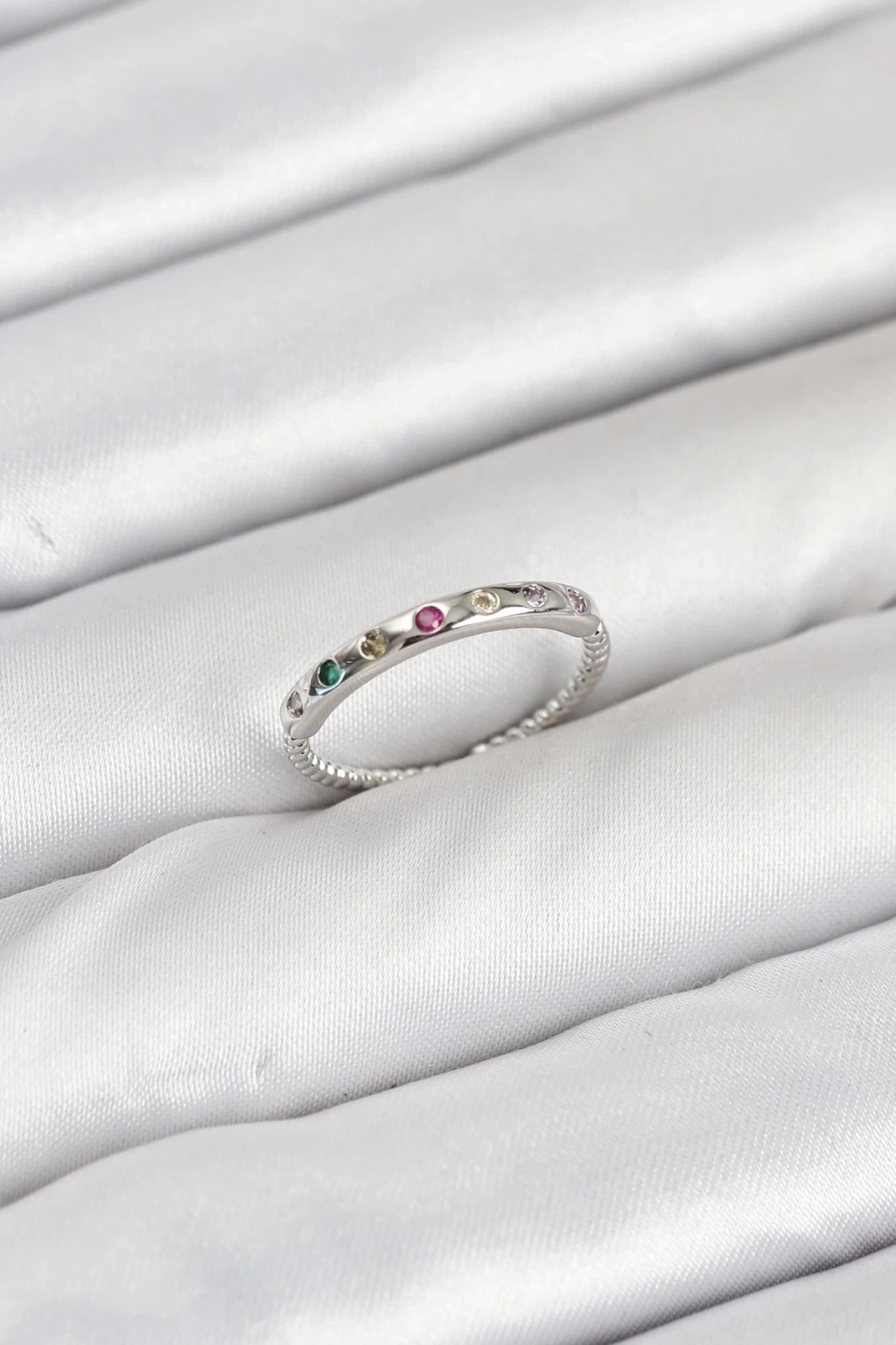BFS Pirinç Gümüş Renk Renkli Zirkon Taşlı Kadın Yüzük