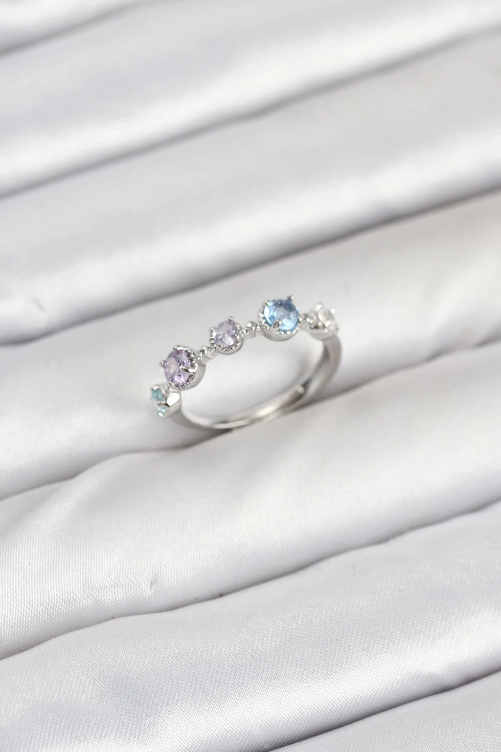 BFS Pirinç Gümüş Renk Renkli Zirkon Taşlı Kadın Yüzük