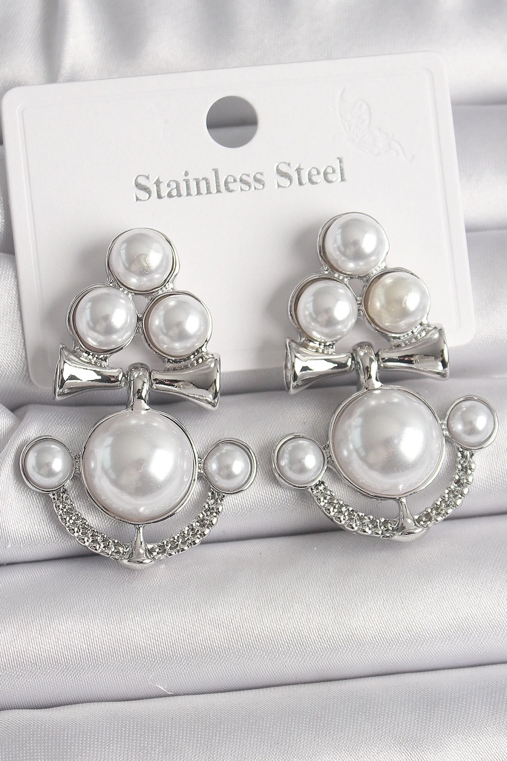 BFS Pirinç Gümüş Renk Sallantı İncili Çapa Model Kadın Küpe