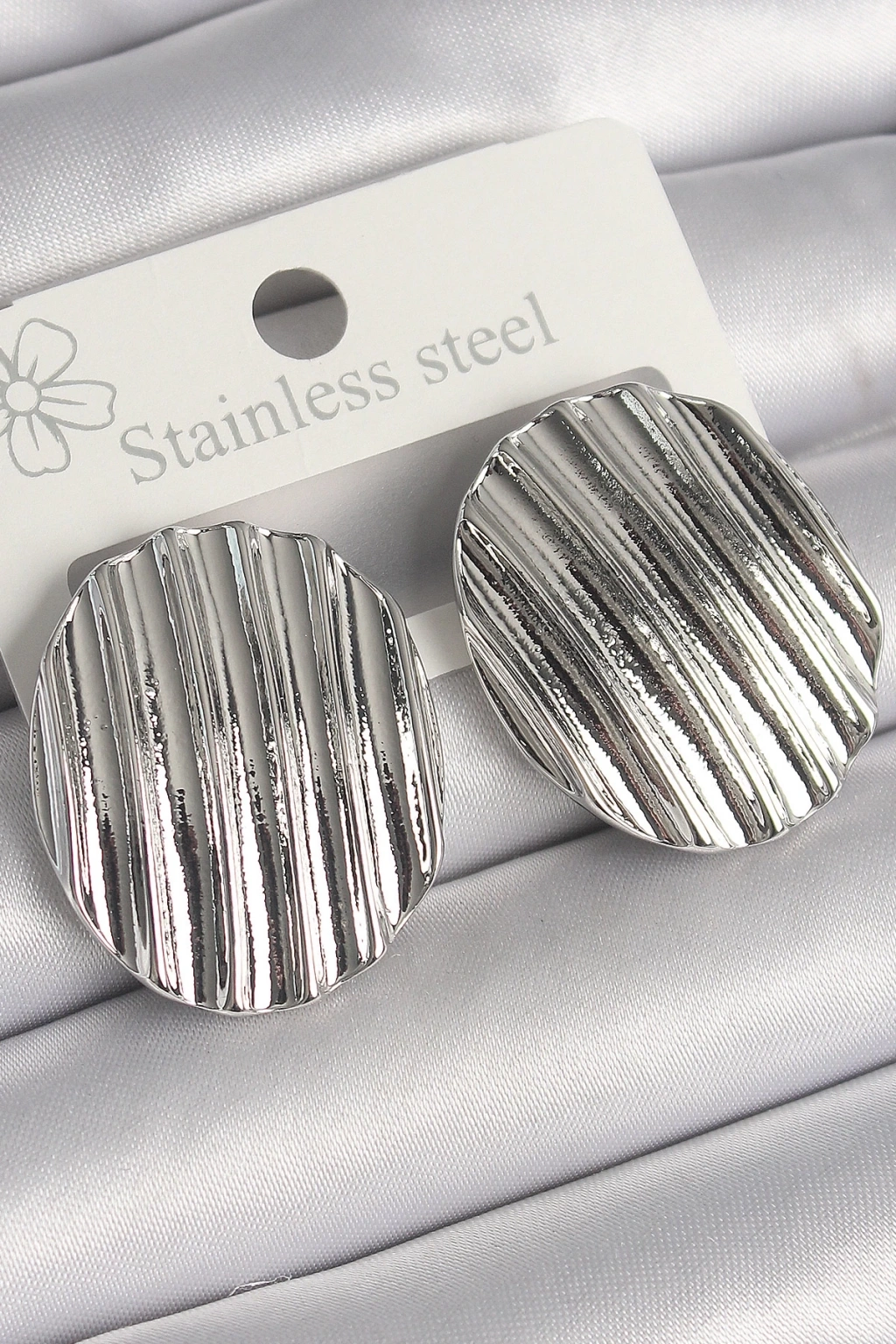 BFS Pirinç Gümüş Renk Sallantı İşlemeli Daire Plaka Model Kadın Küpe