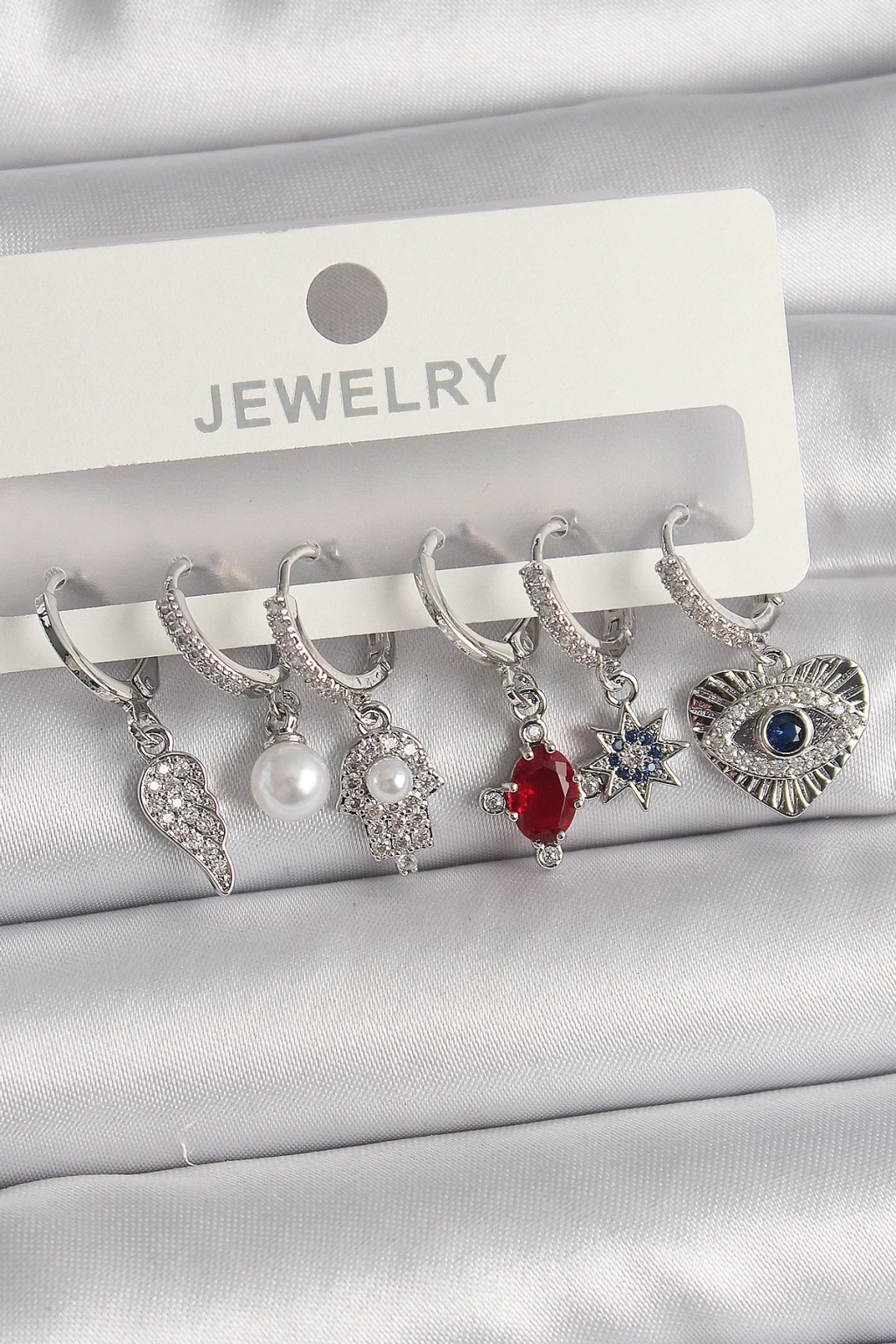 BFS Pirinç Gümüş Renk Sallantı Zirkon Taşlı Fatma Ana El Figür Kadın Küpe Seti