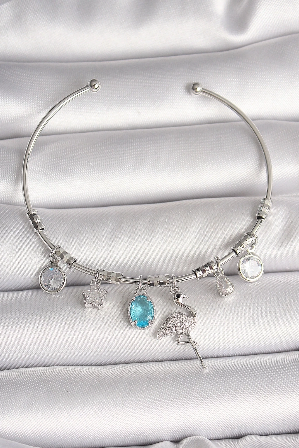 BFS Pirinç Gümüş Renk Sallantı Zirkon Taşlı Filaminga Figür Charm Kadın Bileklik