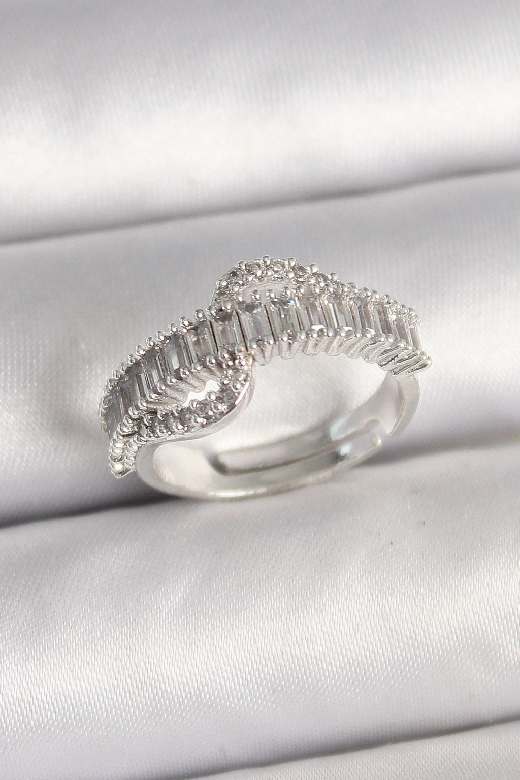 BFS Pirinç Gümüş Renk Su Yolu Zirkon Taşlı Ayarlanabilir Model Kadın Yüzük