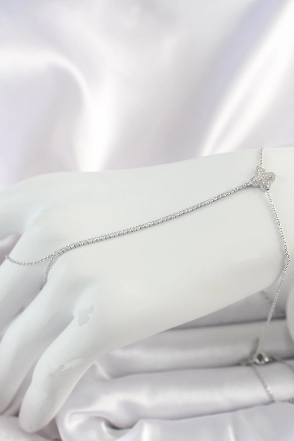 BFS Pirinç Gümüş Renk Su Yolu Zirkon Taşlı İşlemeli Yonca Model Kadın Şahmeran
