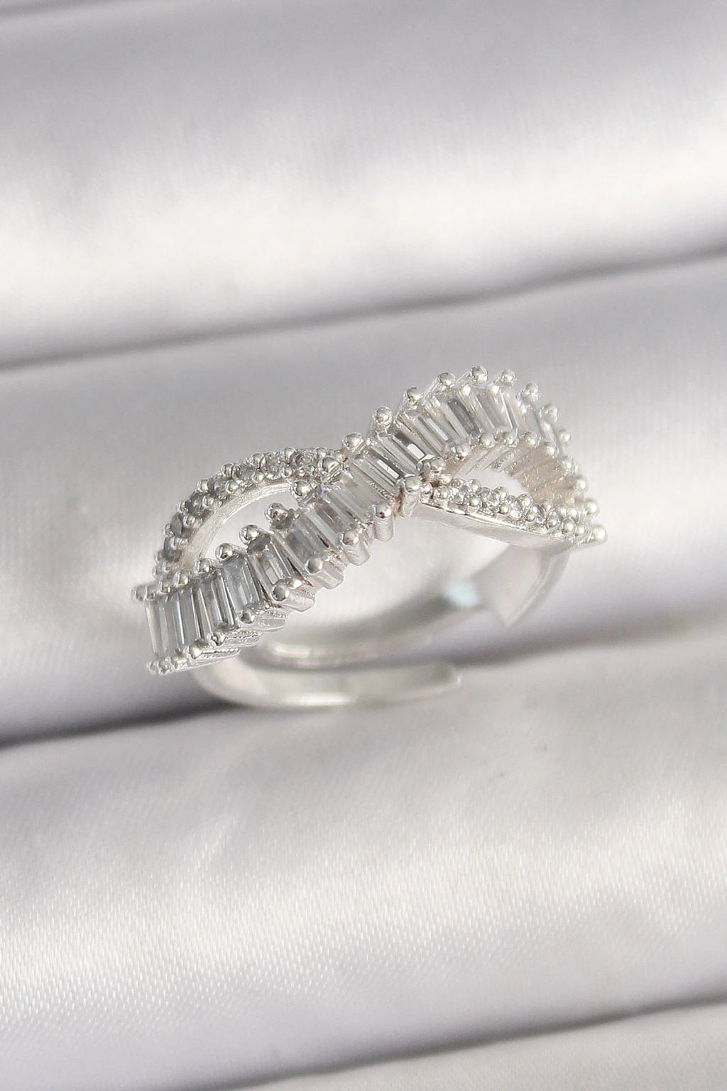 BFS Pirinç Gümüş Renk Su Yolu Zirkon Taşlı Sonsuzluk Model Ayarlanabilir Kadın Yüzük