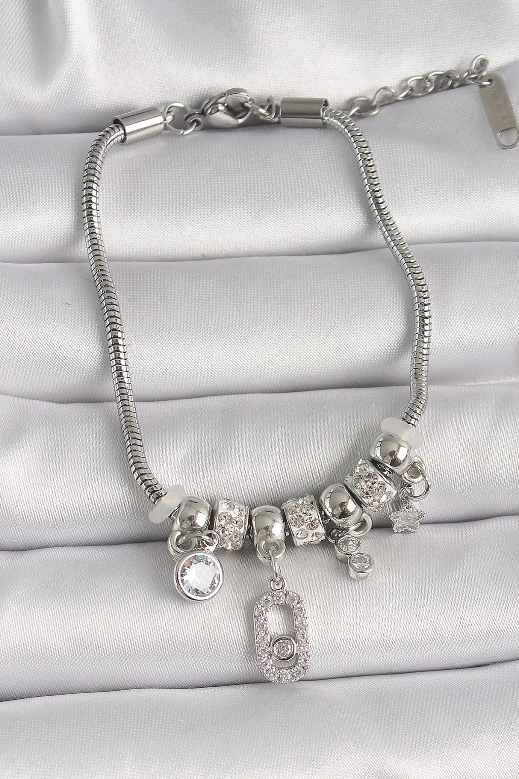 BFS Pirinç Gümüş Renk Zincir Sallantı Zirkon Taşlı Messika Figür Yıldız Detay Kadın Bileklik