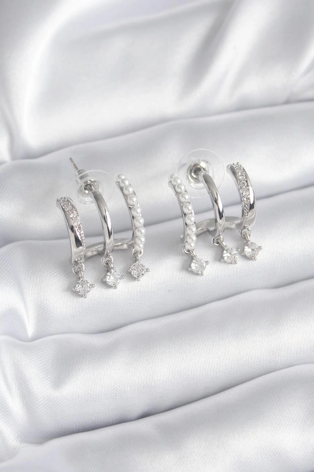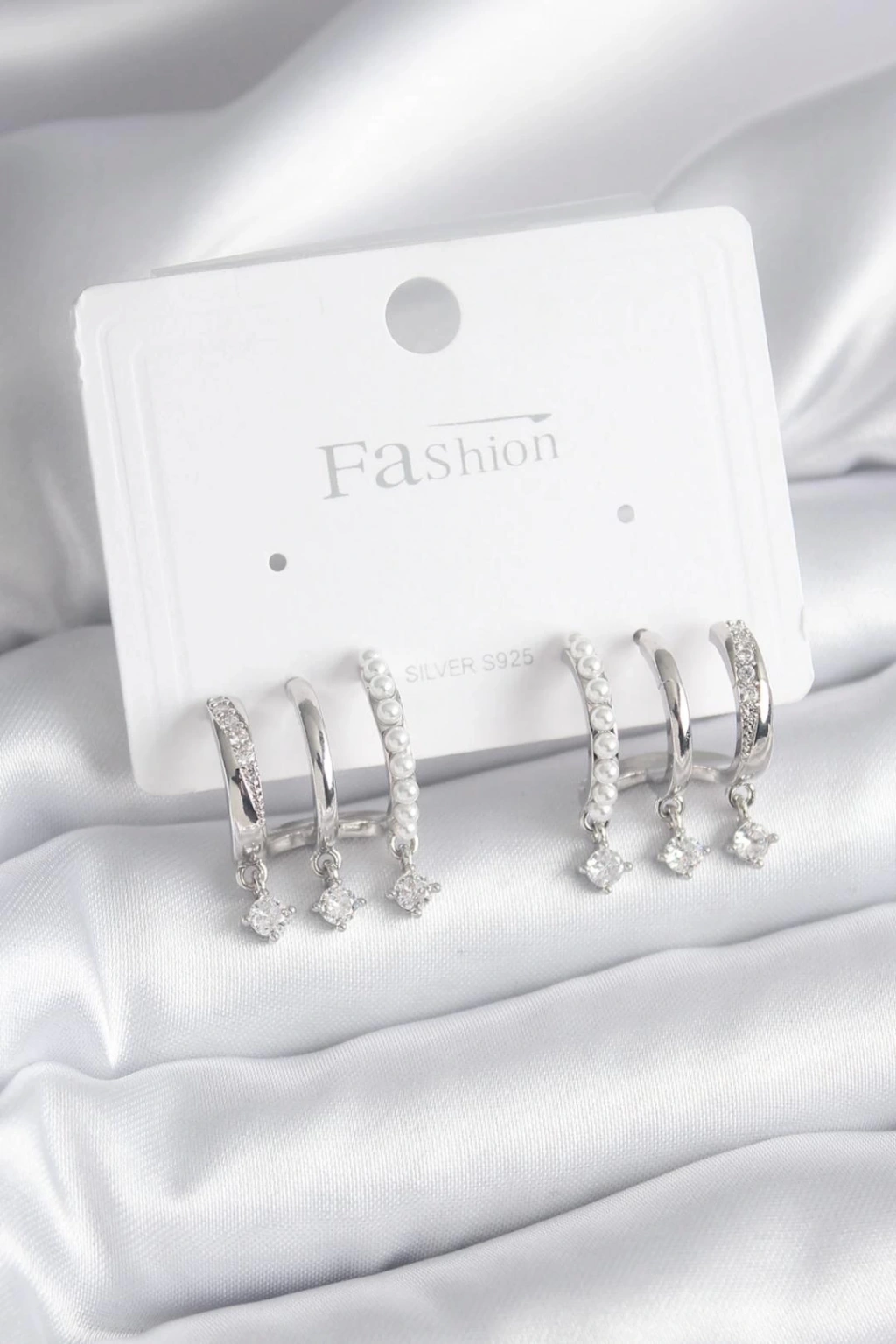 BFS Pirinç Gümüş Renk Zirkon Taş Detay İncili Kadın Küpe