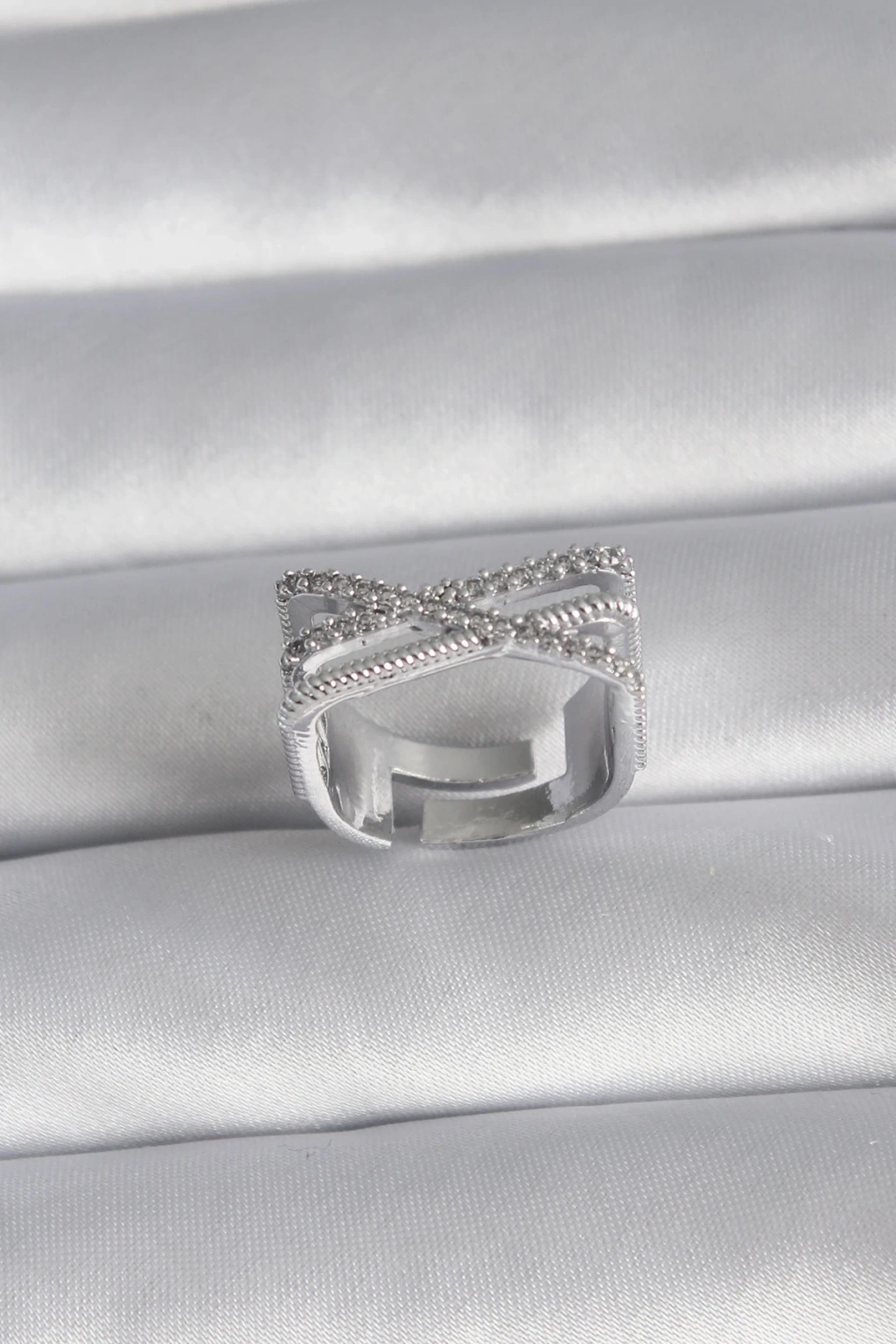 BFS Pirinç Gümüş Renk Zirkon Taş Detay Kadın Yüzük