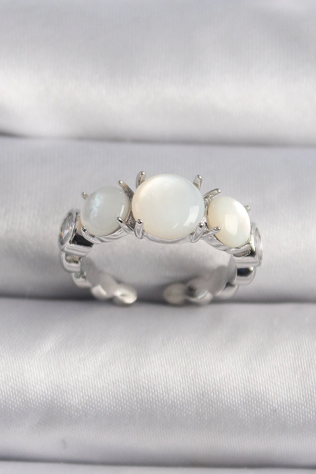 BFS Pirinç Gümüş Renk Zirkon Taş Detaylı Beyaz Sedefli VIP Seri Kadın Yüzük