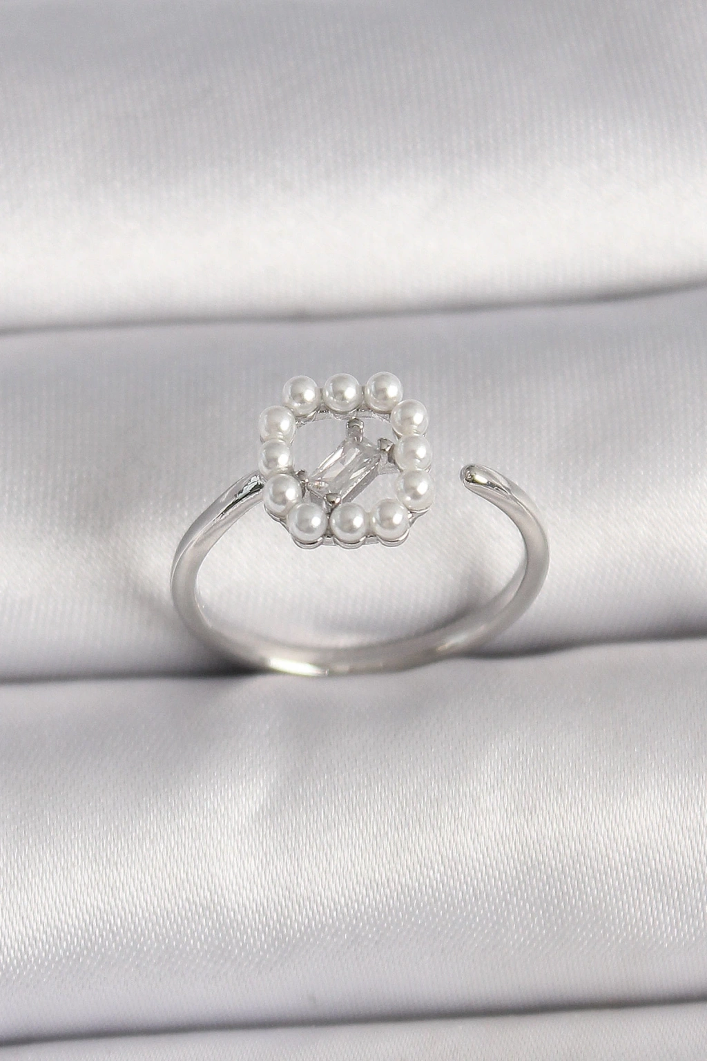 BFS Pirinç Gümüş Renk Zirkon Taş Detaylı İncili Ayarlanabilir Yüzük