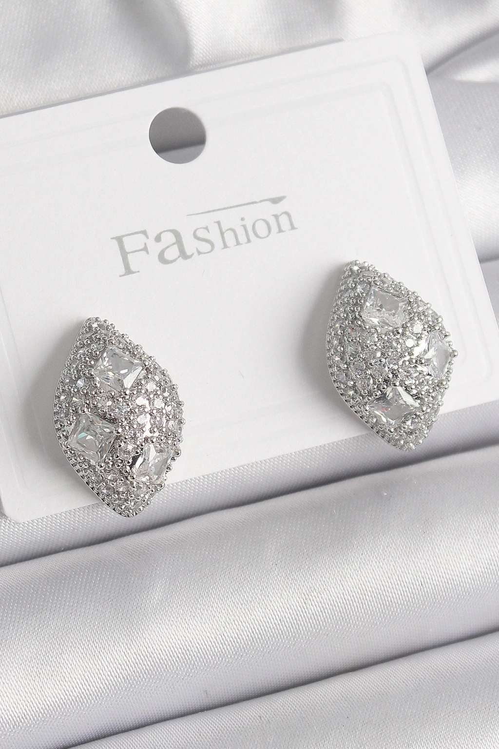BFS Pirinç Gümüş Renk Zirkon Taş İşlemeli Damla Model Kadın Küpe