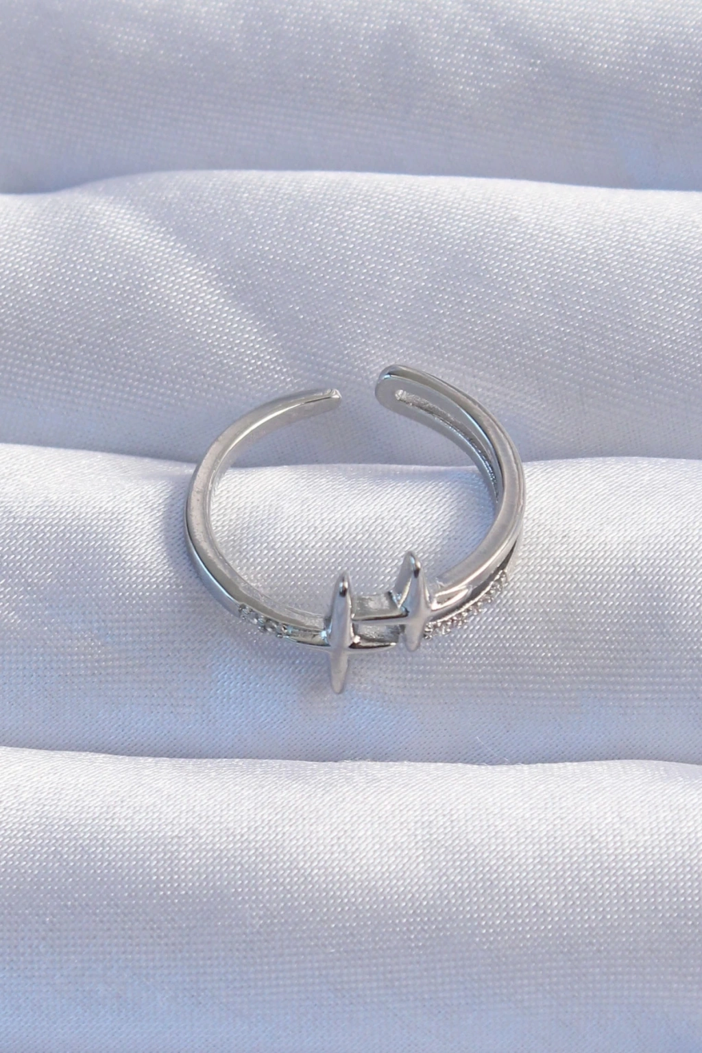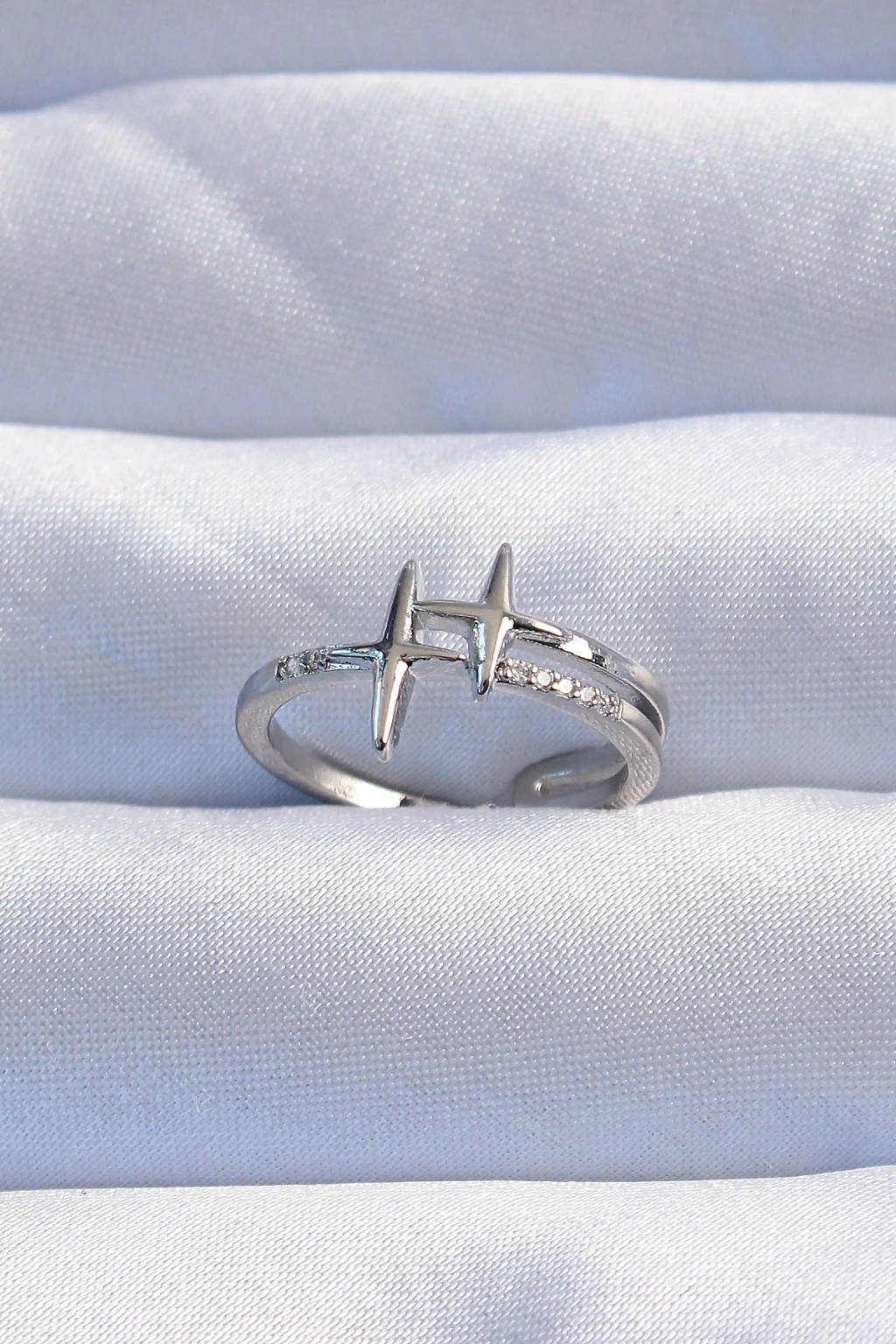 BFS Pirinç Gümüş Renk Zirkon Taşlı 2li Görünüm Ayarlanabilir Yıldız Model Yüzük