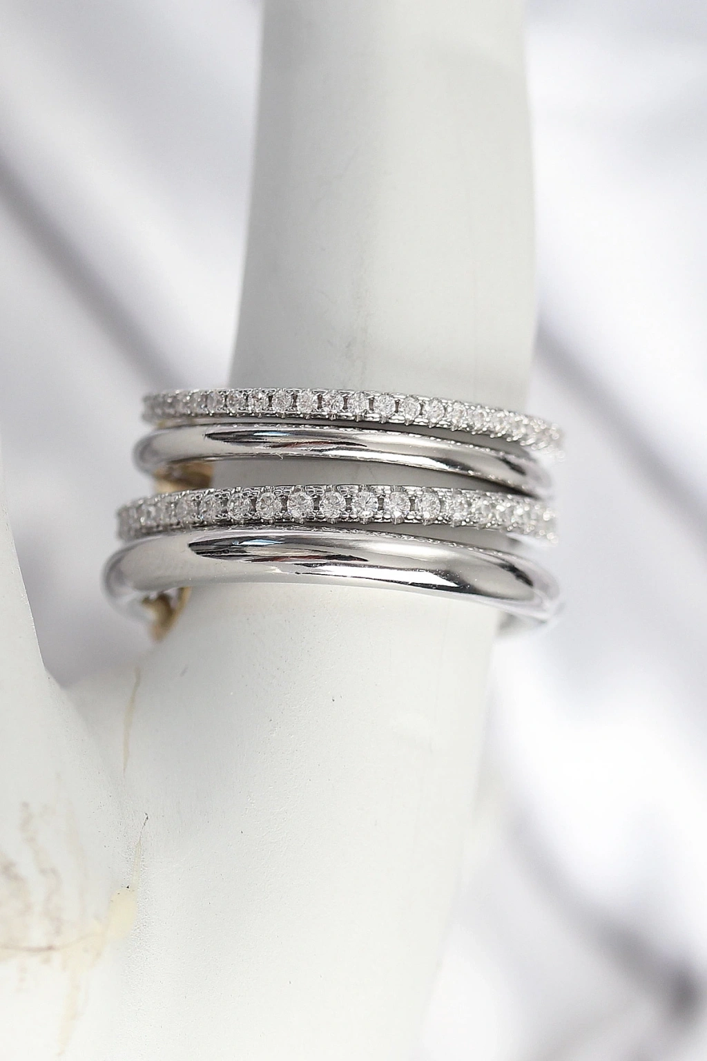 BFS Pirinç Gümüş Renk Zirkon Taşlı 4'Lü Kadın Yüzük