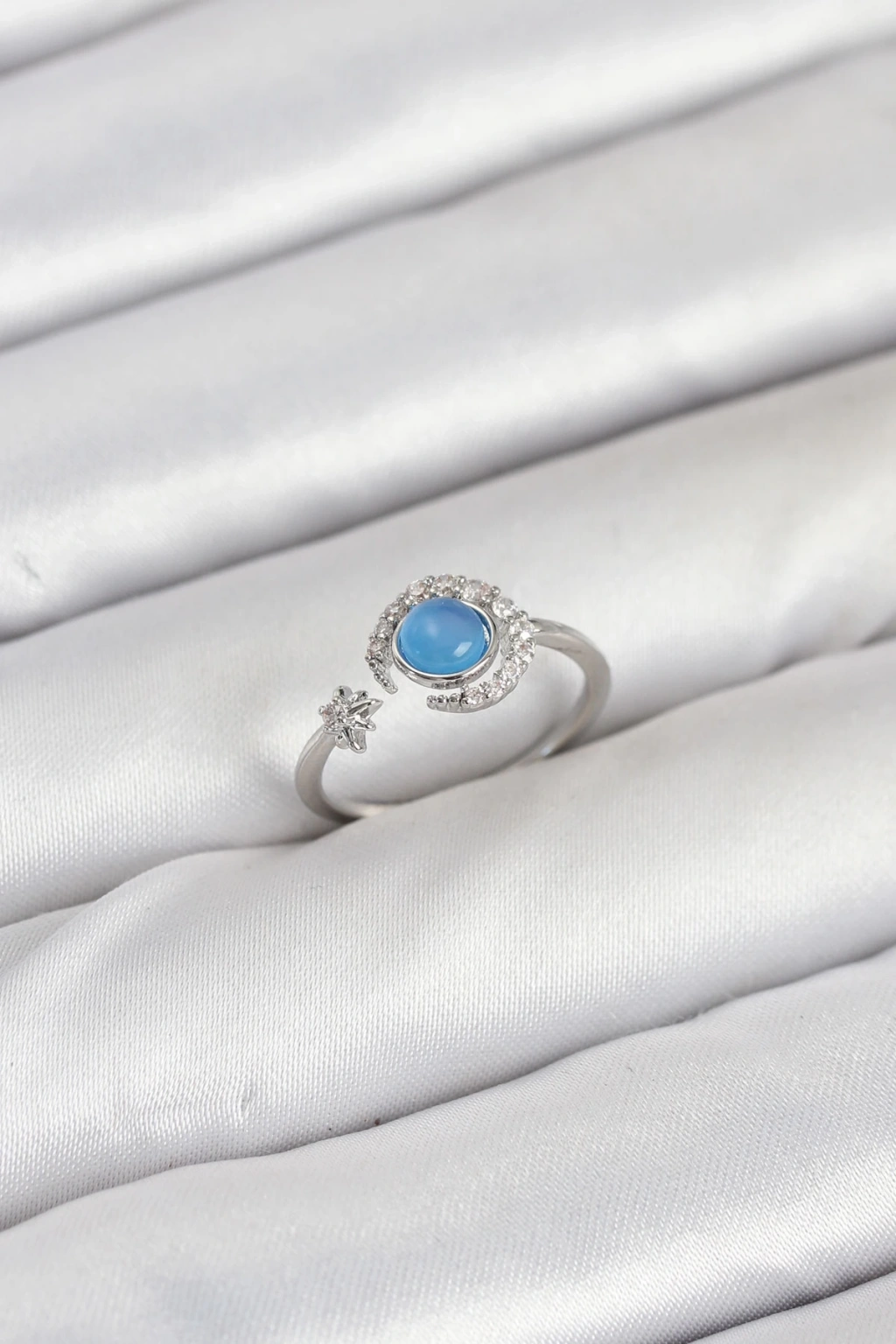 BFS Pirinç Gümüş Renk Zirkon Taşlı Ay Yıldız Kadın Yüzük