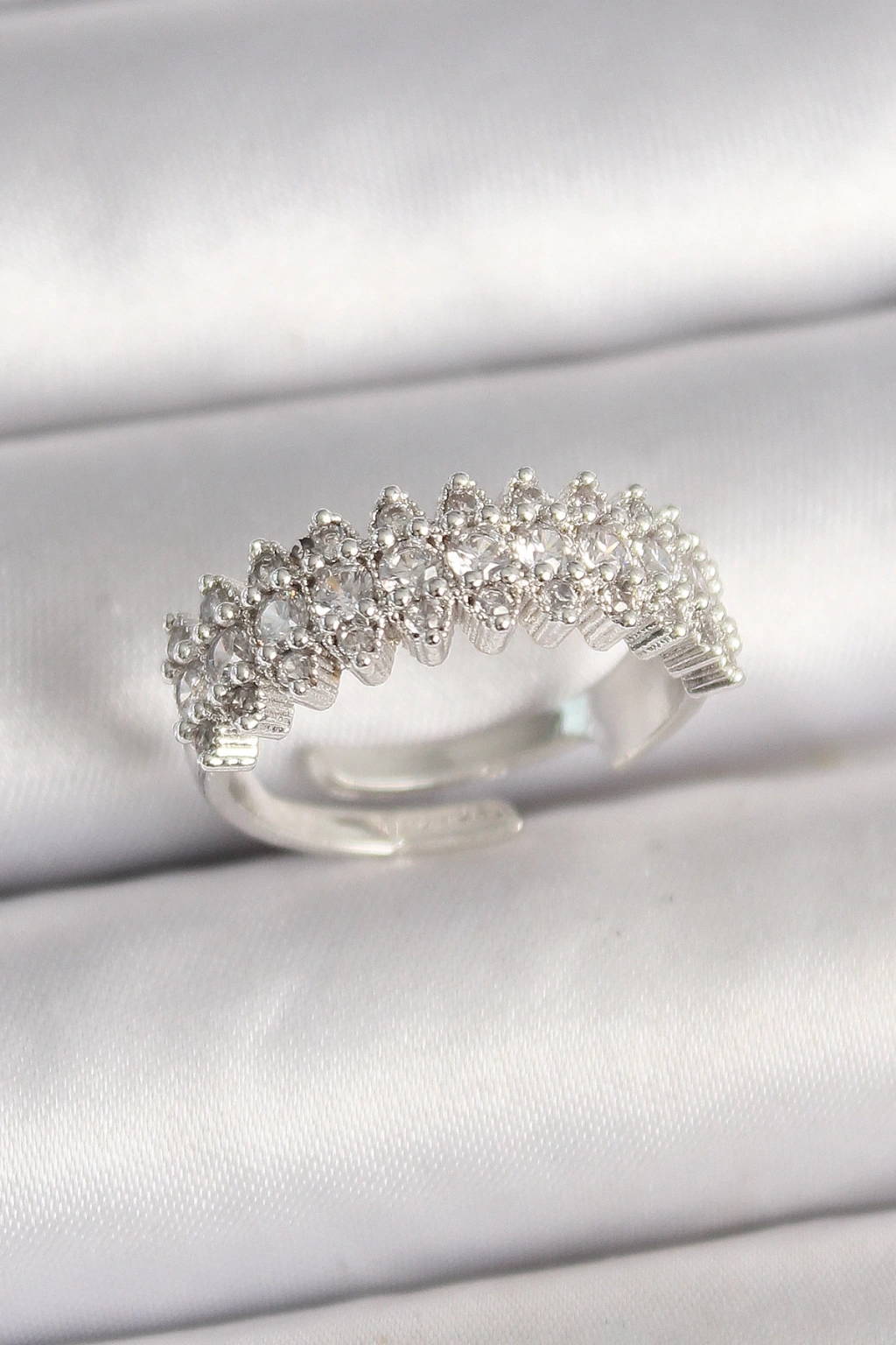 BFS Pirinç Gümüş Renk Zirkon Taşlı Ayarlanabilir Kadın Yüzük