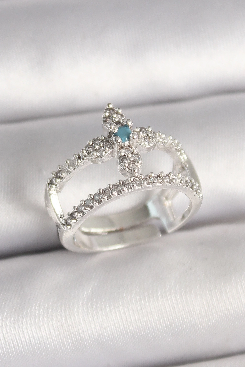 BFS Pirinç Gümüş Renk Zirkon Taşlı Ayarlanabilir Model Kadın Yüzük