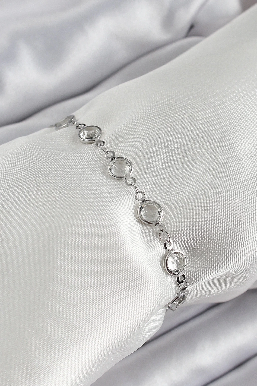 BFS Pirinç Gümüş Renk Zirkon Taşlı Bileklik