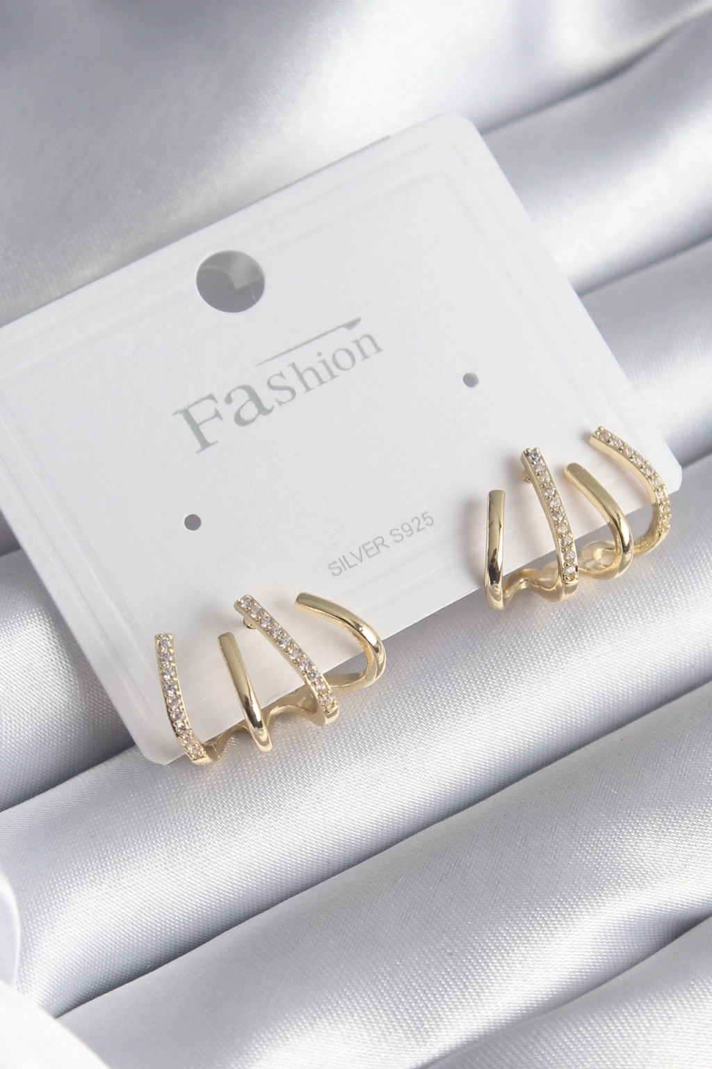 BFS Pirinç Gümüş Renk Zirkon Taşlı Çatal Model Kadın Küpe
