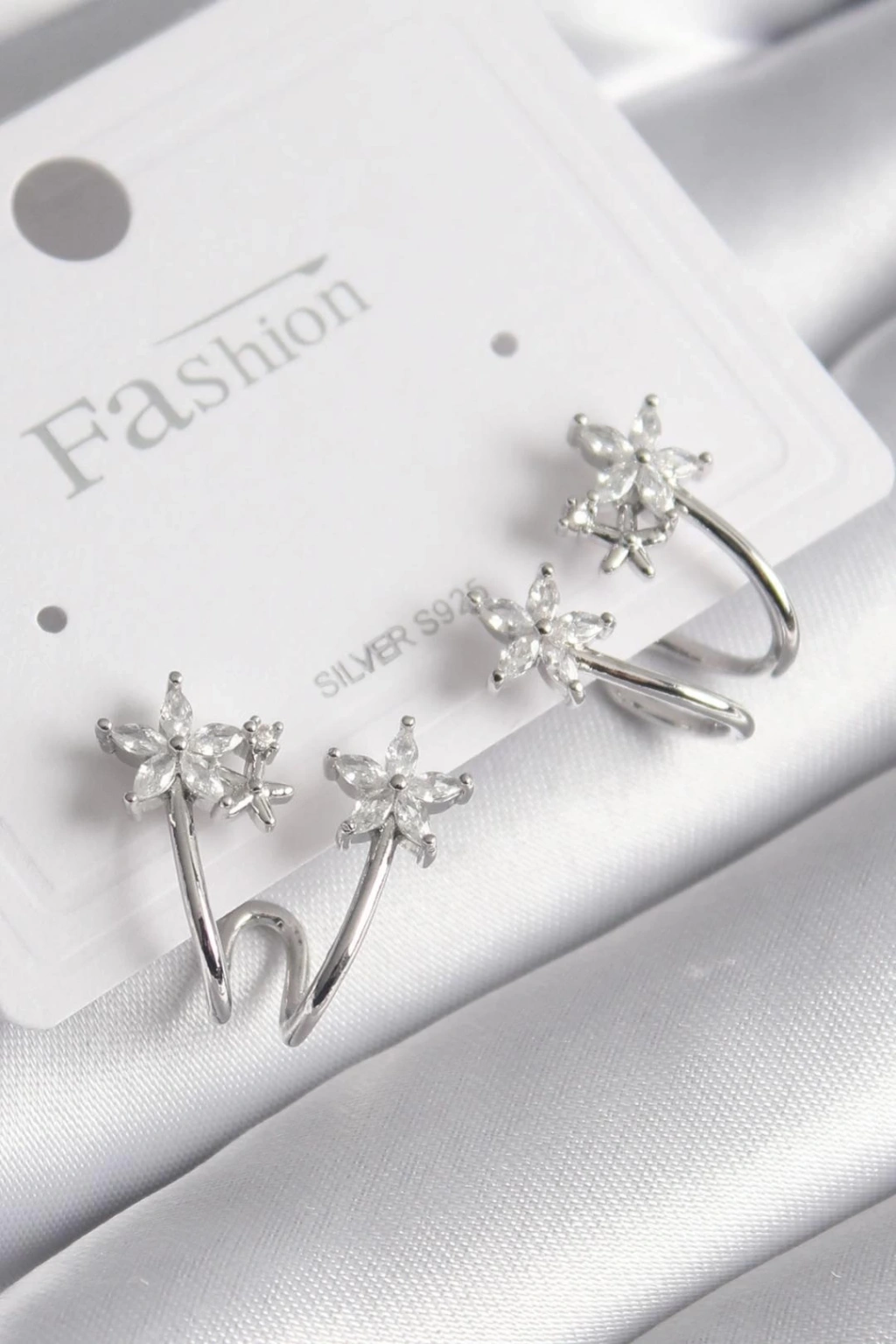 BFS Pirinç Gümüş Renk Zirkon Taşlı Çiçek Model Kadın Küpe