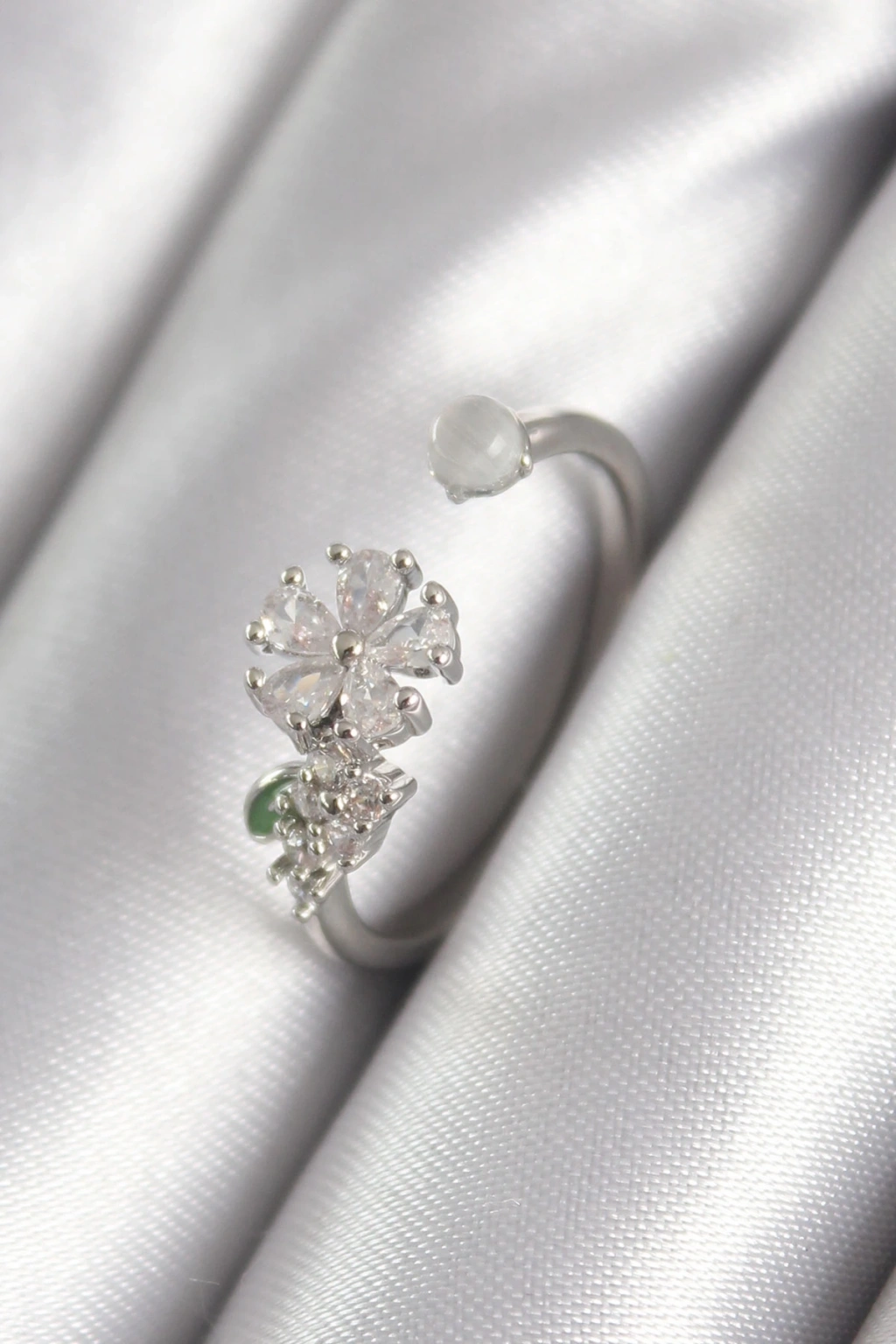BFS Pirinç Gümüş Renk Zirkon Taşlı Çiçek Model Kadın Yüzük