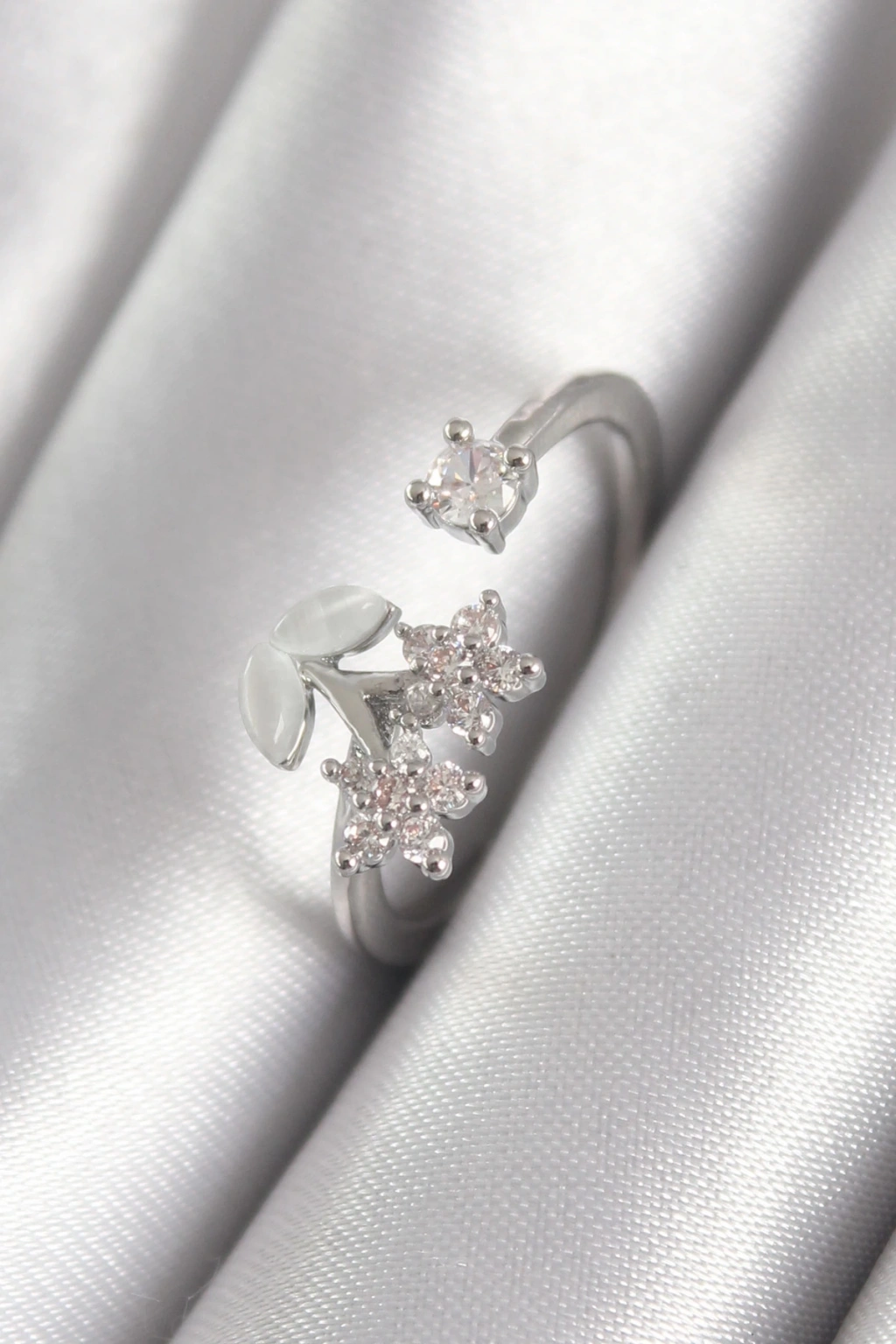 BFS Pirinç Gümüş Renk Zirkon Taşlı Çiçek Model Kadın Yüzük