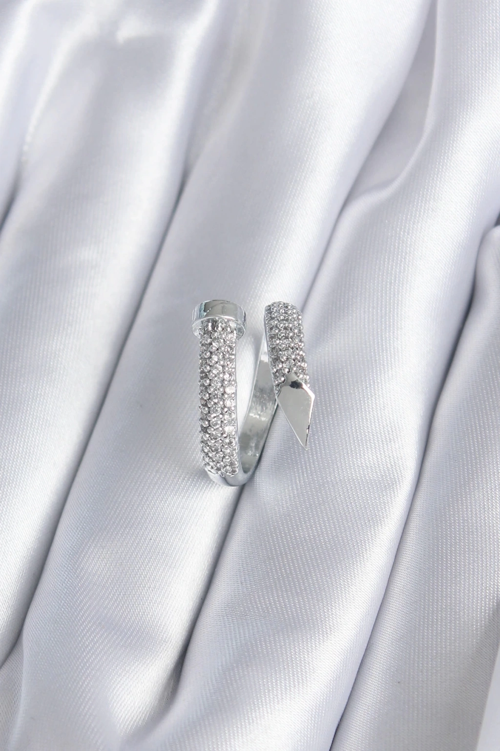 BFS Pirinç Gümüş Renk Zirkon Taşlı Çivi Model Kadın Yüzük