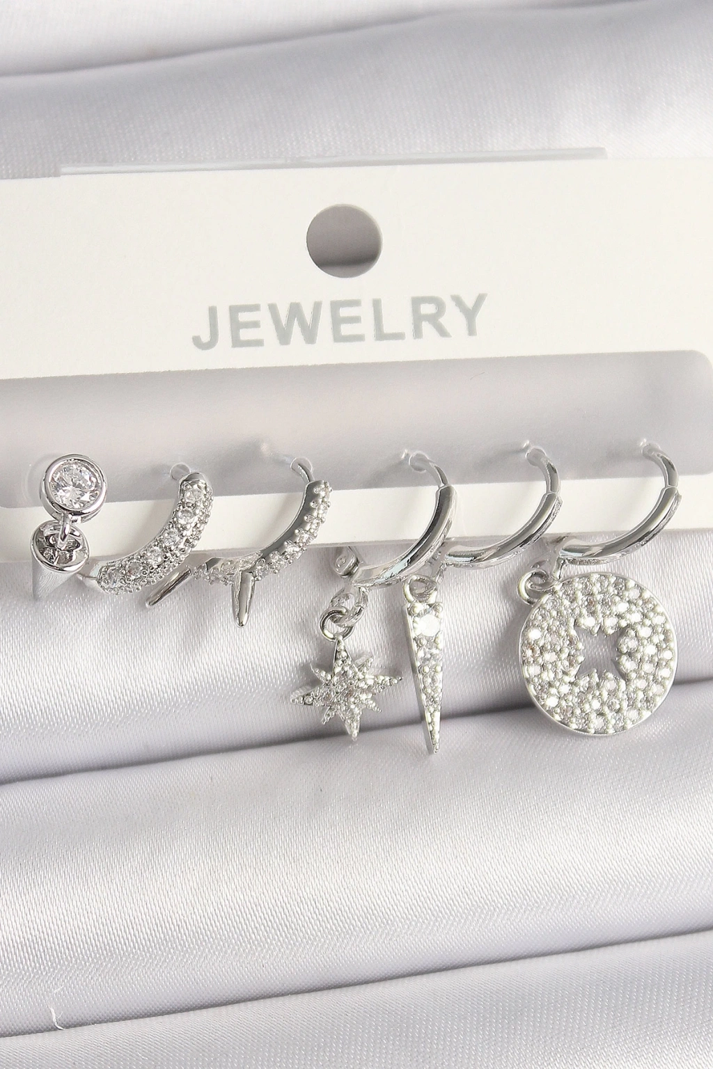 BFS Pirinç Gümüş Renk Zirkon Taşlı Çoklu Figür Kadın Küpe Seti