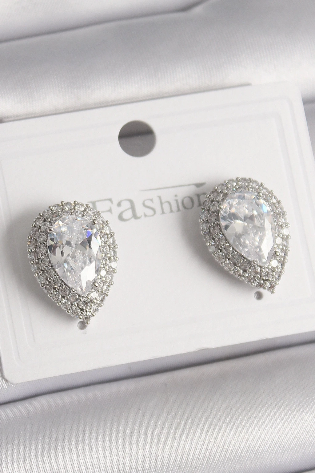 BFS Pirinç Gümüş Renk Zirkon Taşlı Damla Model Kadın Küpe