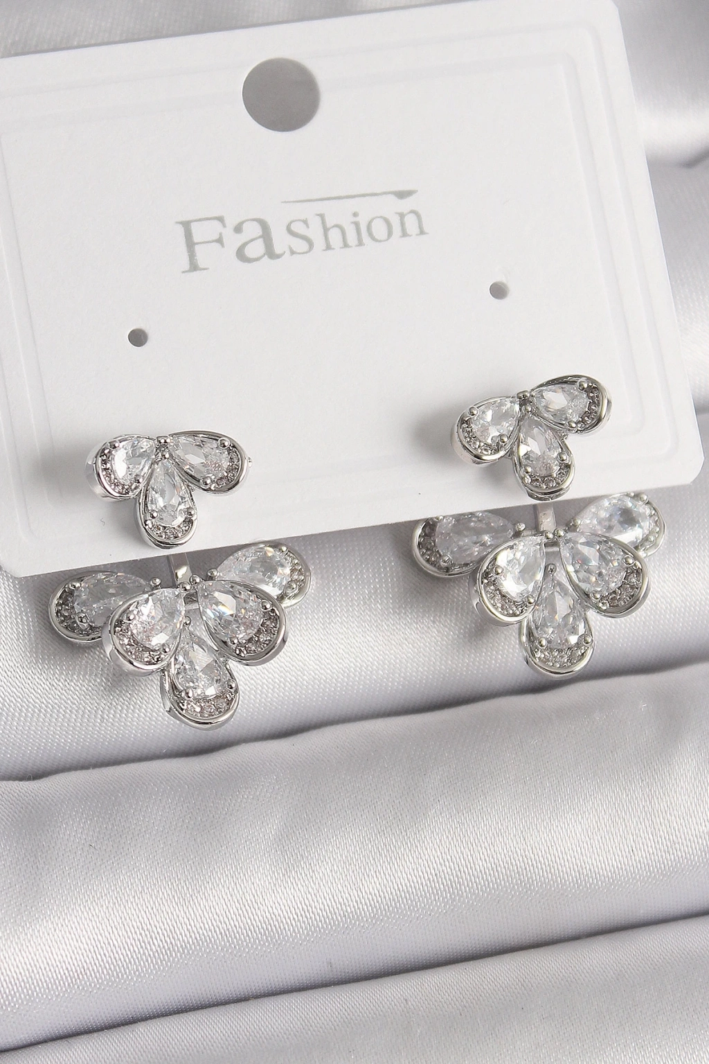 BFS Pirinç Gümüş Renk Zirkon Taşlı Damla Model Kadın Küpe