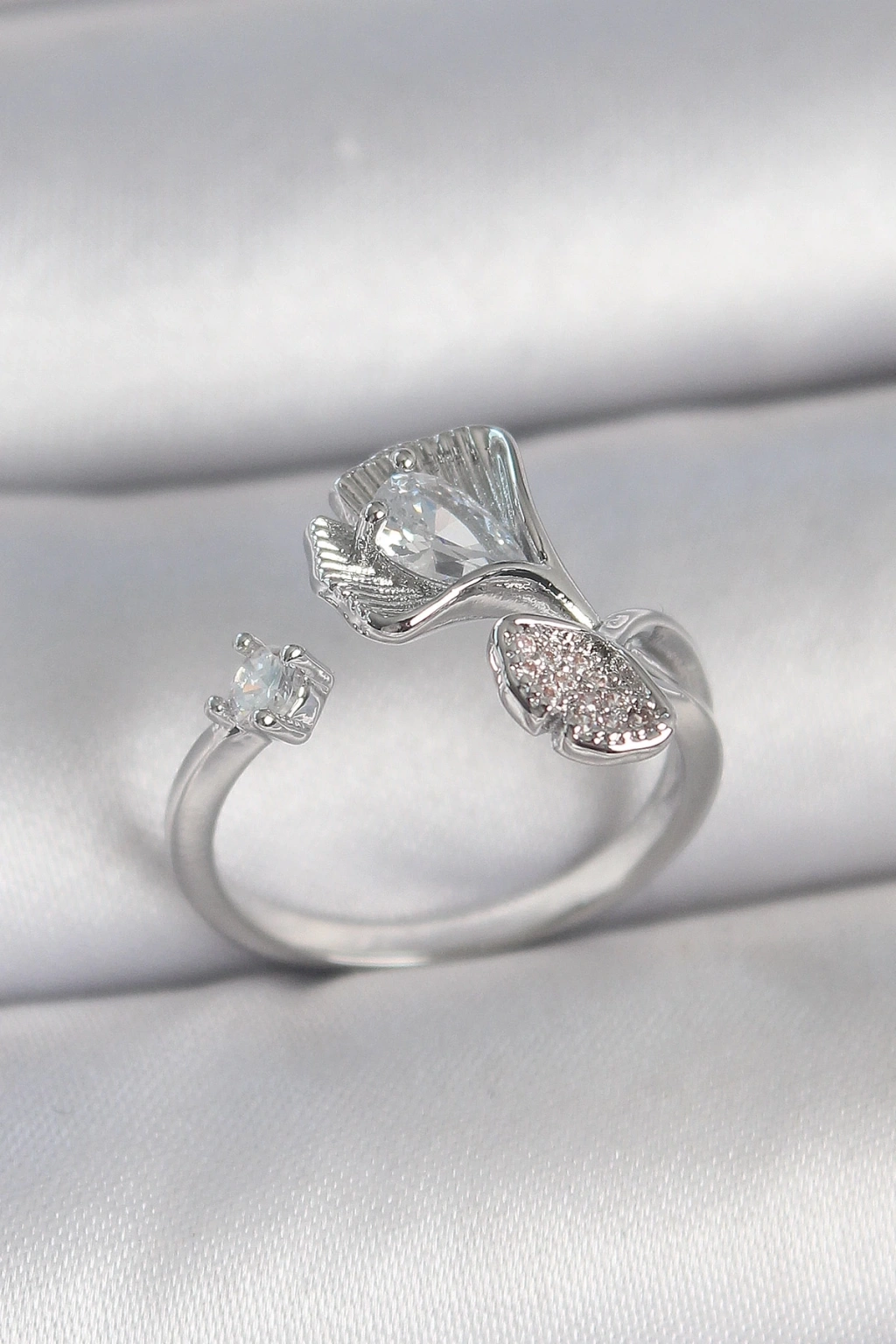 BFS Pirinç Gümüş Renk Zirkon Taşlı Deniz Kabuğu Model Ayarlanabilir Kadın Yüzük
