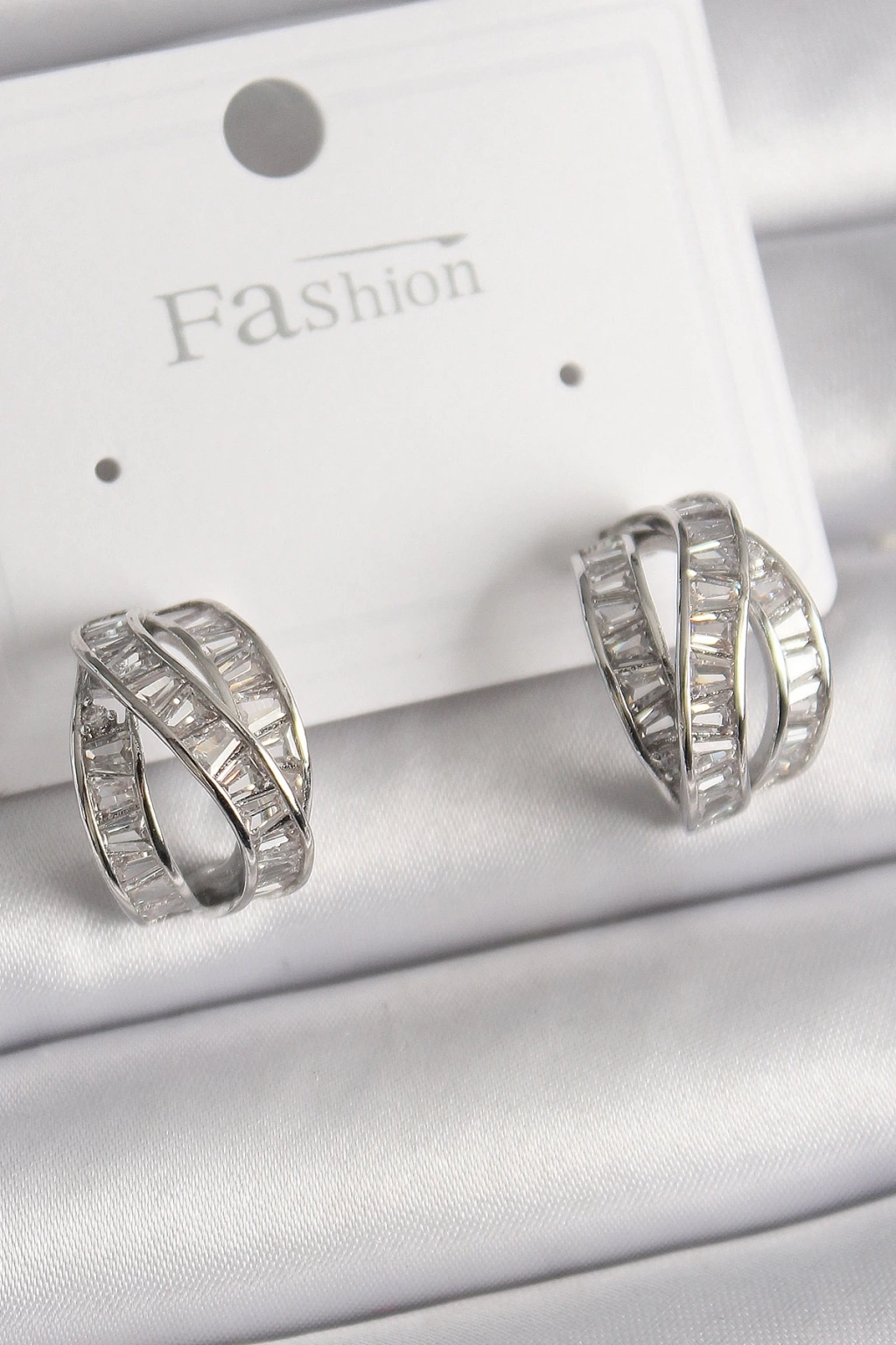 BFS Pirinç Gümüş Renk Zirkon Taşlı Düğüm Halka Model Kadın Küpe