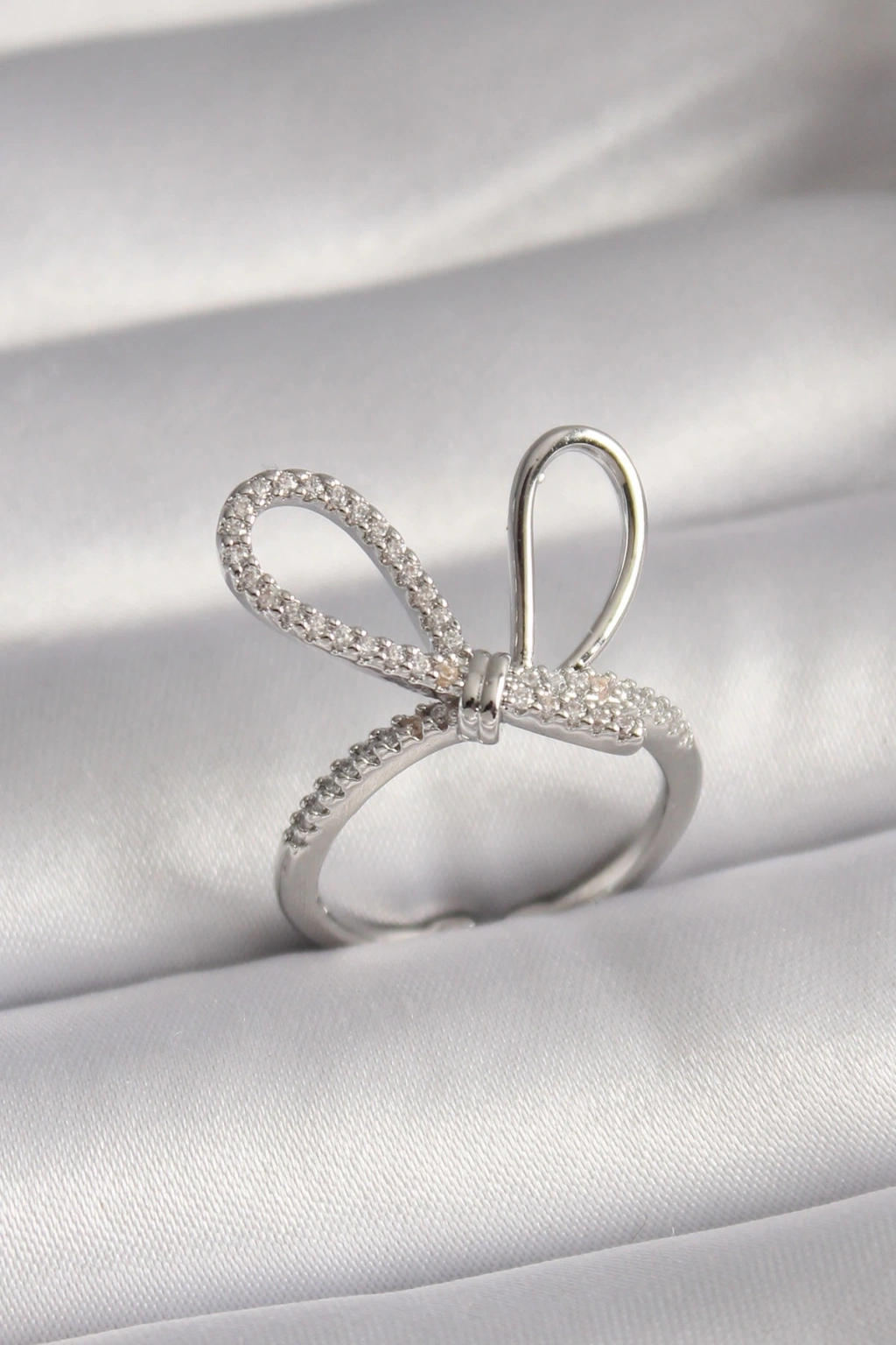 BFS Pirinç Gümüş Renk Zirkon Taşlı Düğüm Model Kadın Yüzük