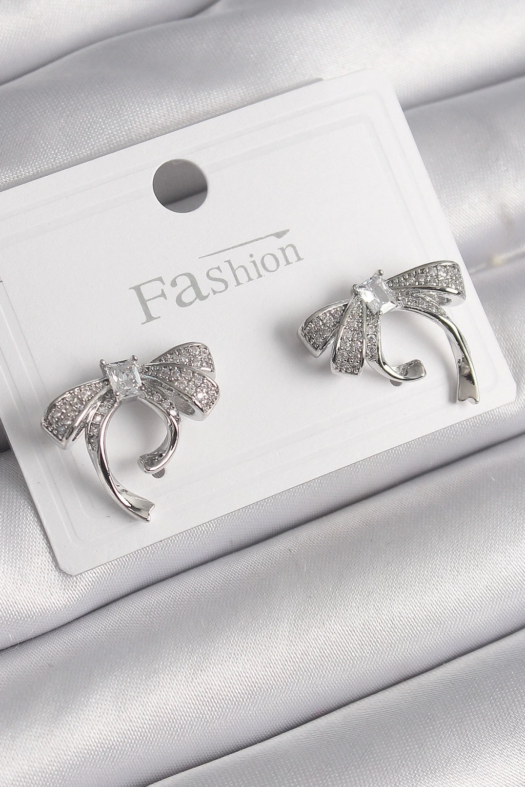 BFS Pirinç Gümüş Renk Zirkon Taşlı Fiyonk Model Kadın Küpe