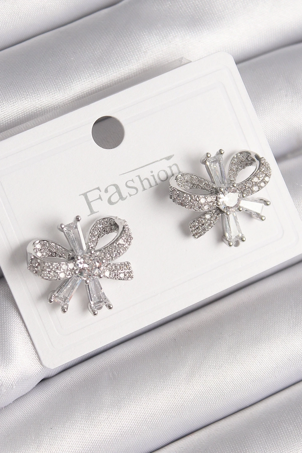 BFS Pirinç Gümüş Renk Zirkon Taşlı Fiyonk Model Kadın Küpe