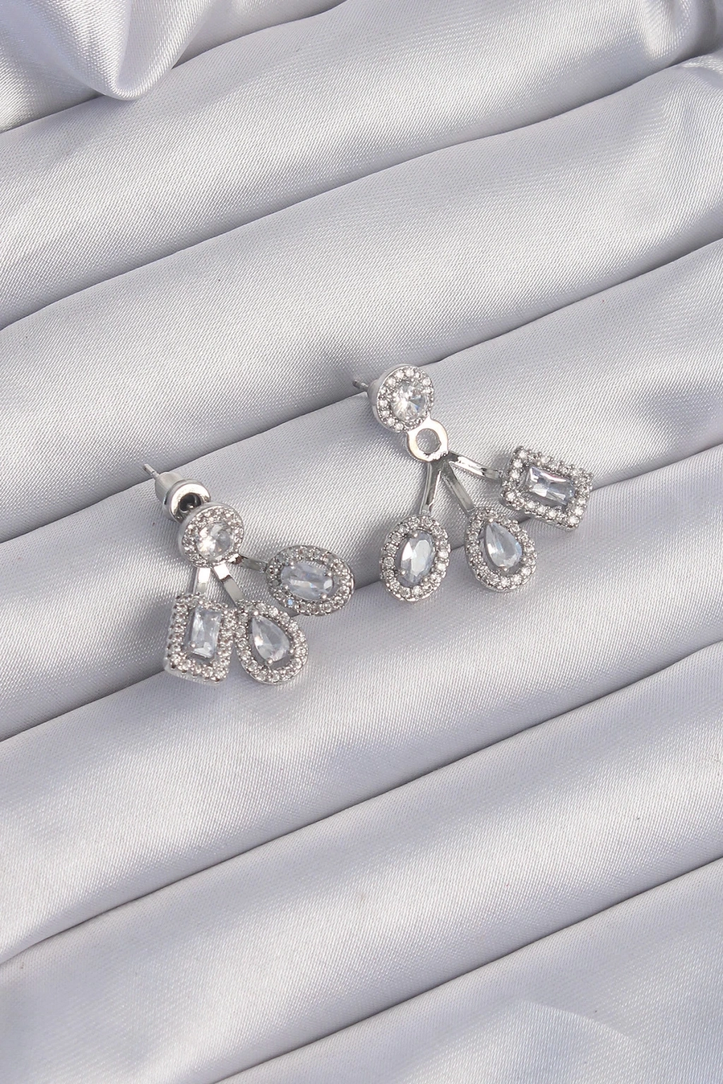 BFS Pirinç Gümüş Renk Zirkon Taşlı Geometrik Model Küpe