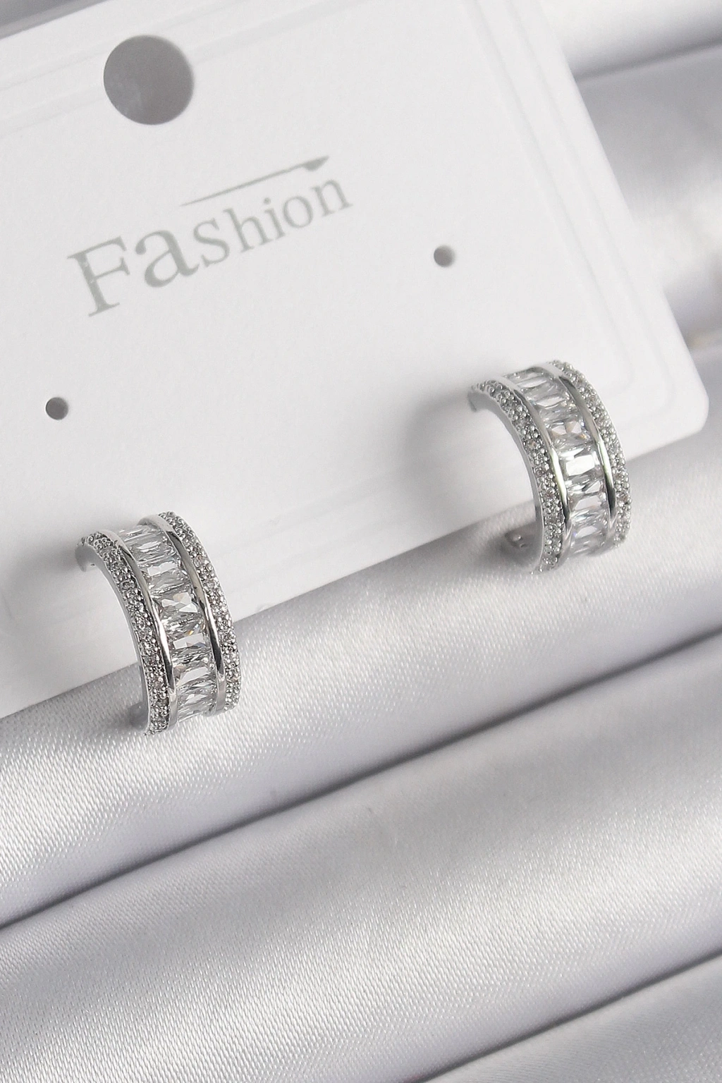 BFS Pirinç Gümüş Renk Zirkon Taşlı Halka Model Kadın Küpe