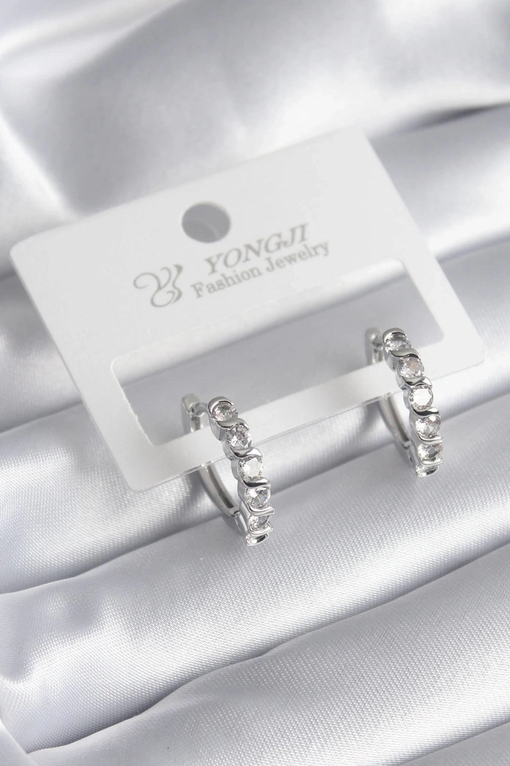 BFS Pirinç Gümüş Renk Zirkon Taşlı Halka Model Kadın Küpe