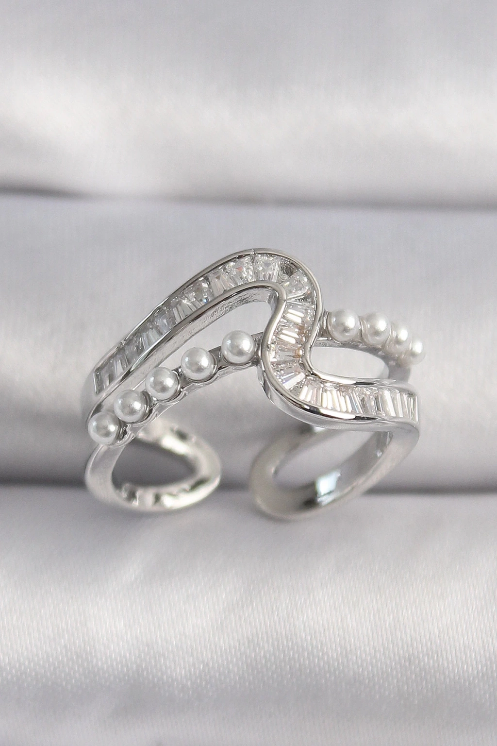 BFS Pirinç Gümüş Renk Zirkon Taşlı İnci Detay VIP Seri Kadın Yüzük
