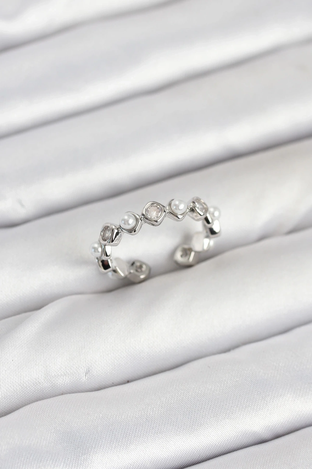 BFS Pirinç Gümüş Renk Zirkon Taşlı İncili Kadın Yüzük
