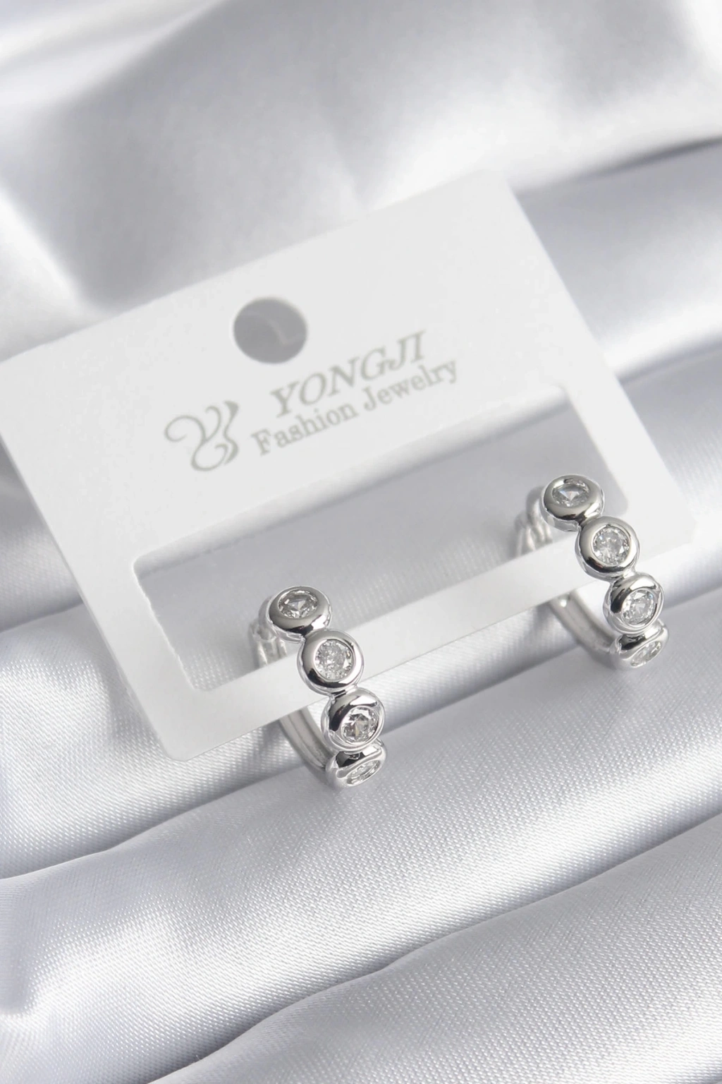 BFS Pirinç Gümüş Renk Zirkon Taşlı Kadın Küpe