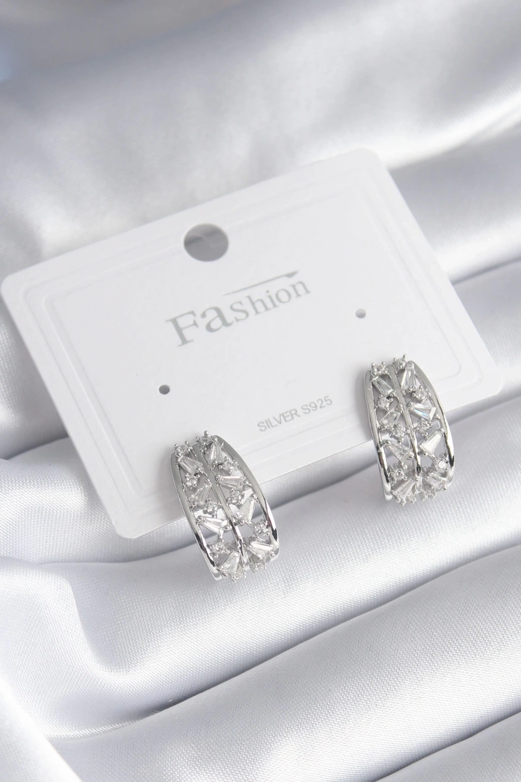 BFS Pirinç Gümüş Renk Zirkon Taşlı Kadın Küpe