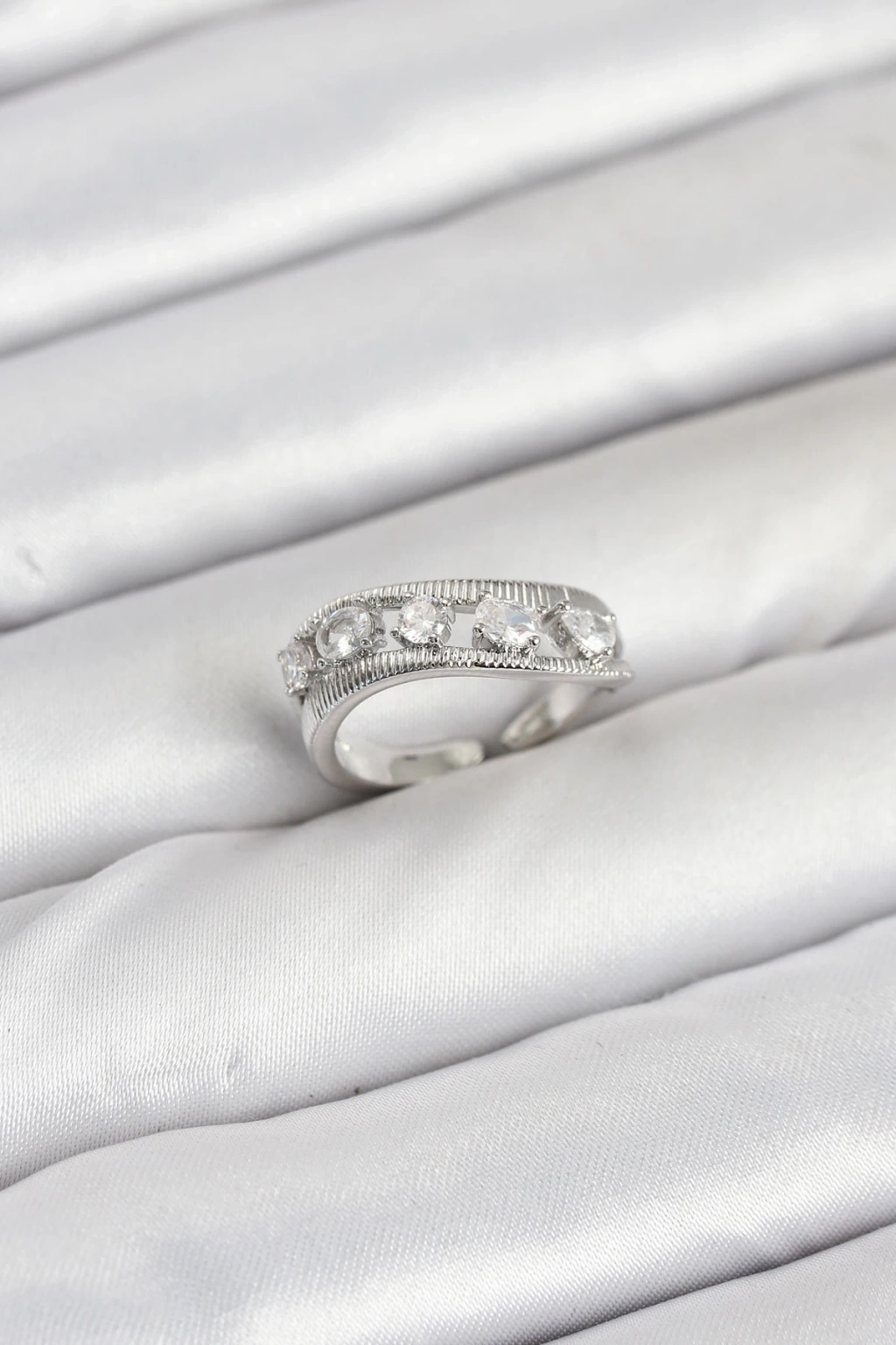 BFS Pirinç Gümüş Renk Zirkon Taşlı Kadın Yüzük