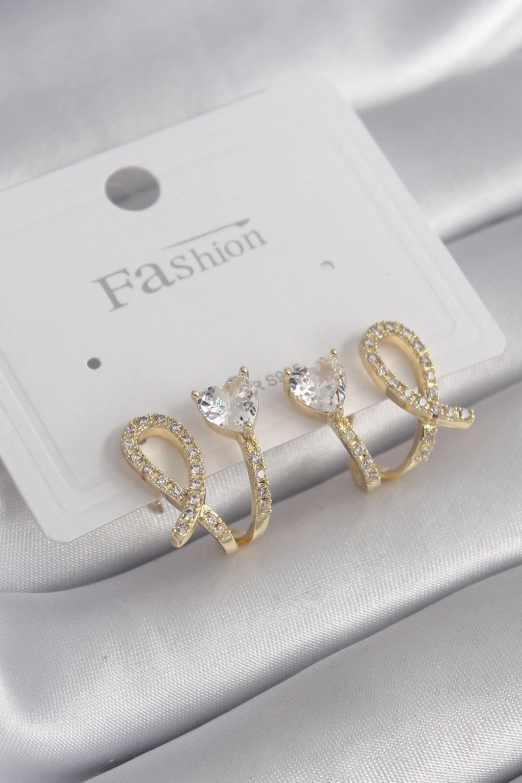 BFS Pirinç Gümüş Renk Zirkon Taşlı Kalp Model Kadın Küpe
