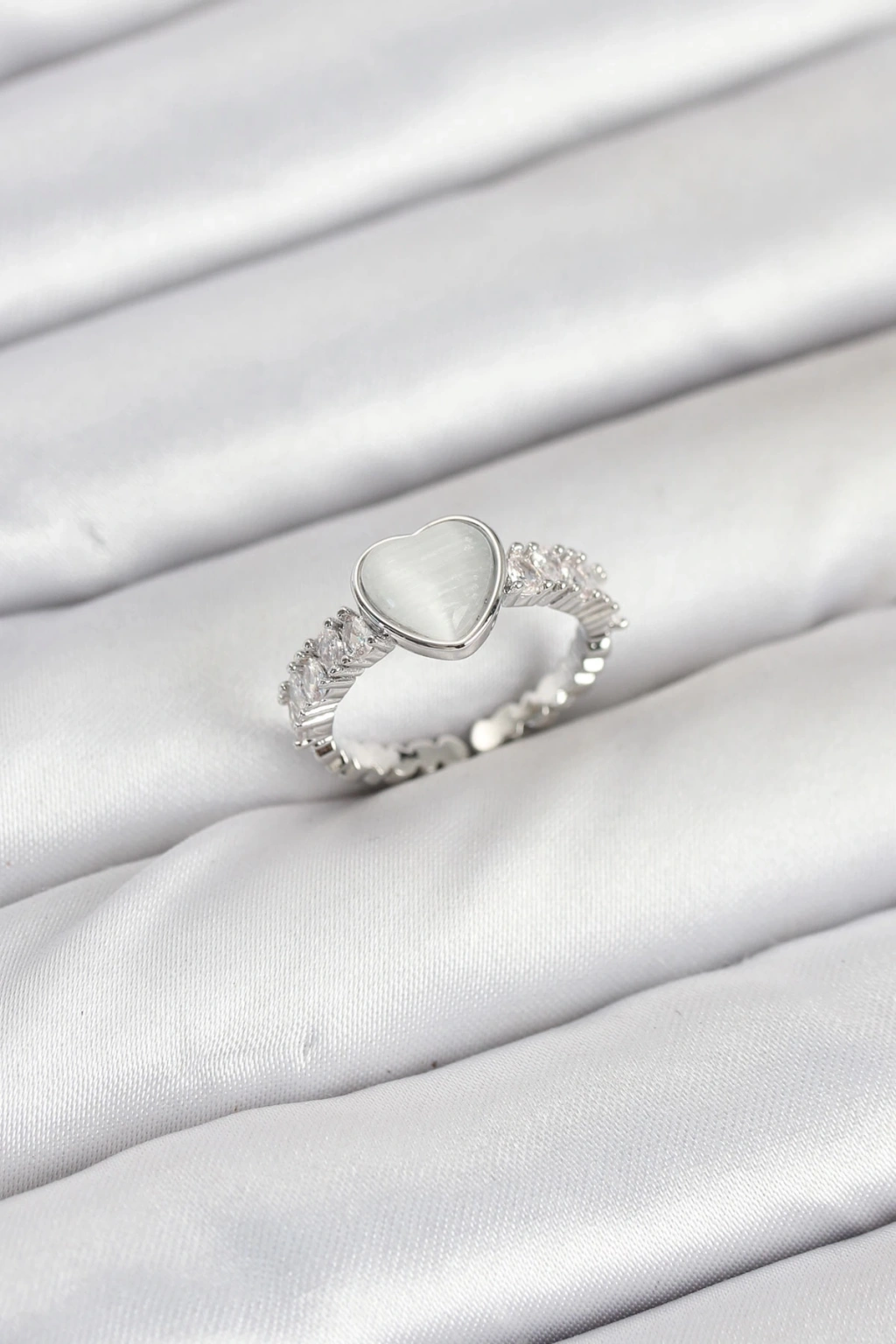 BFS Pirinç Gümüş Renk Zirkon Taşlı Kalpli Kadın Yüzük